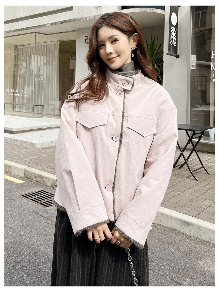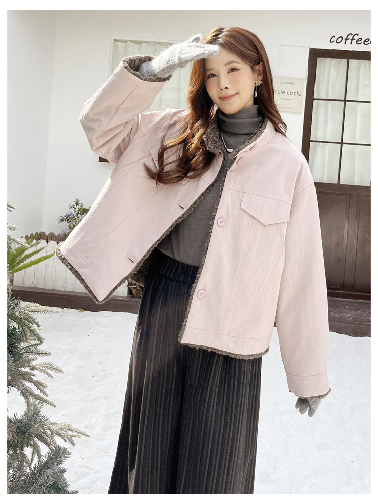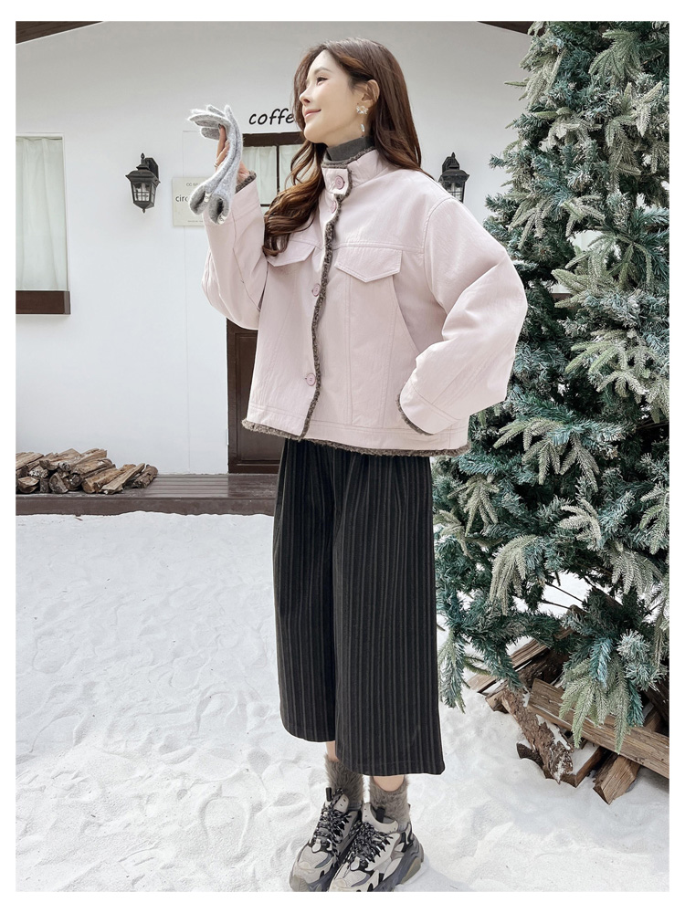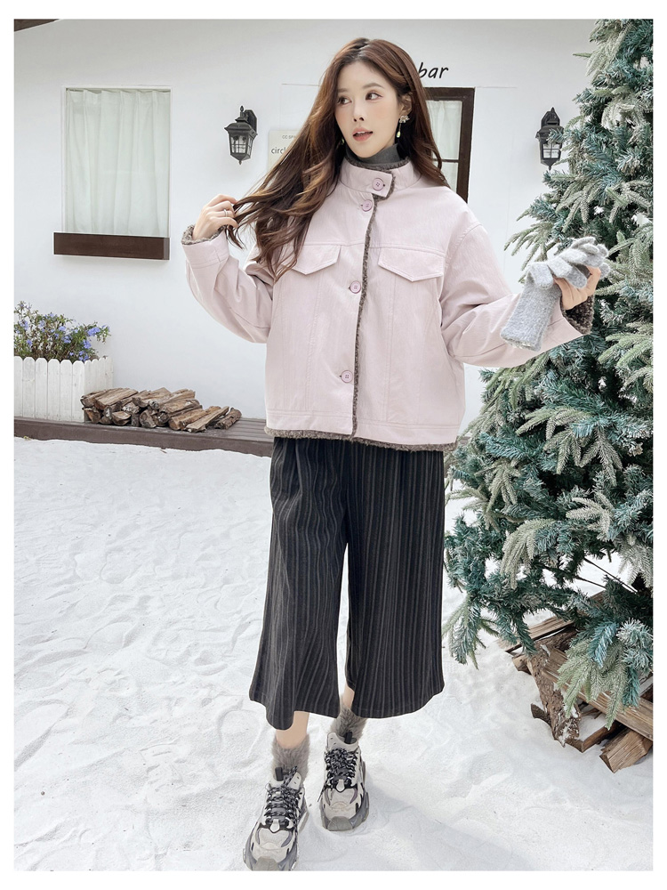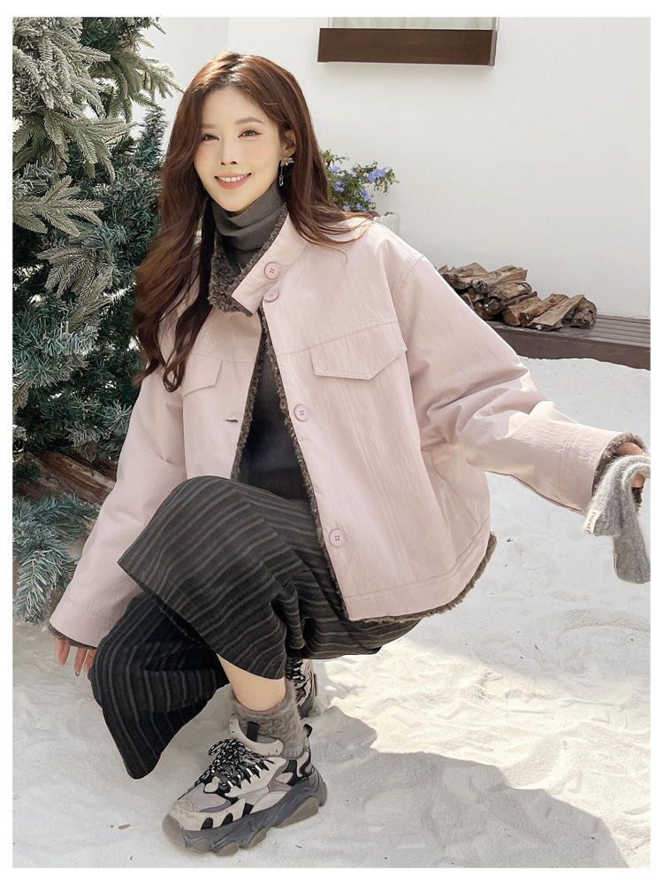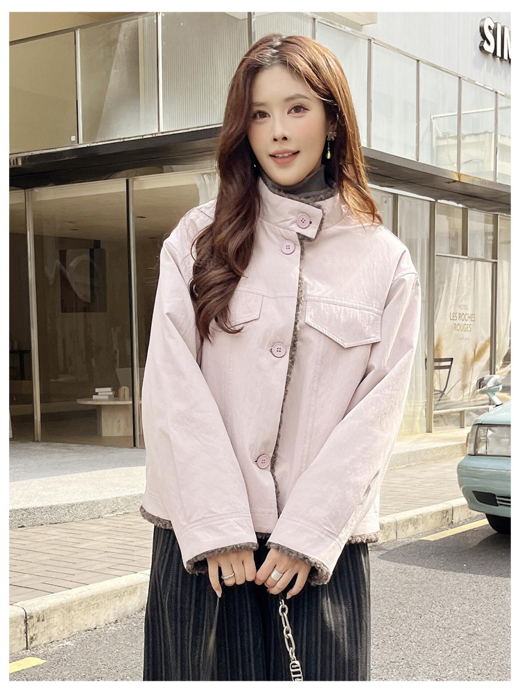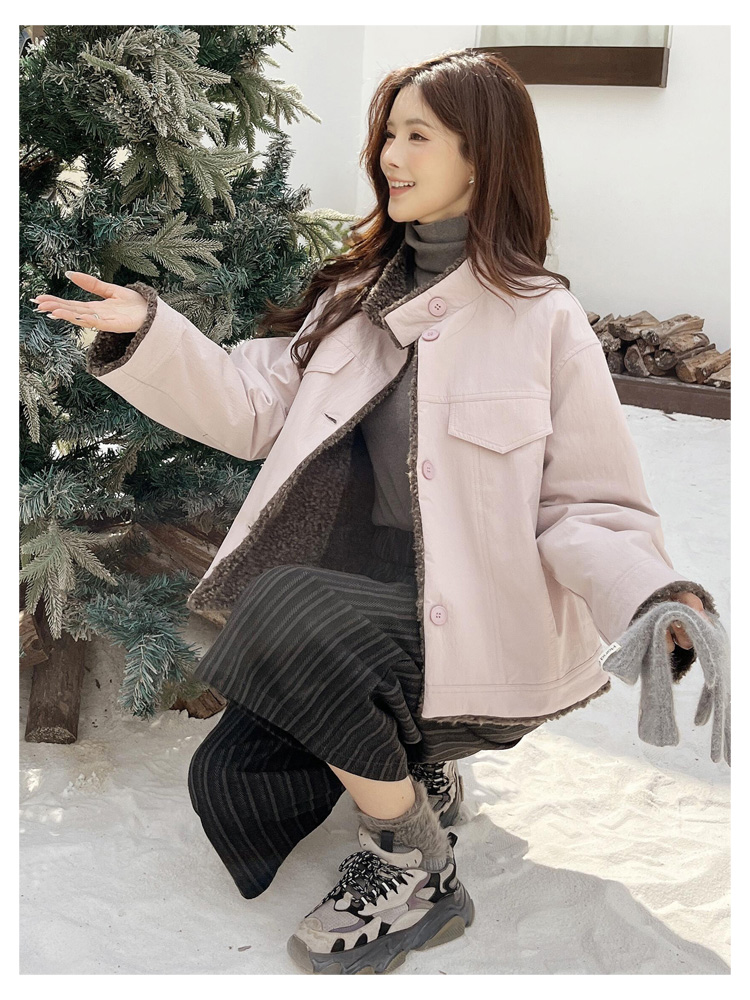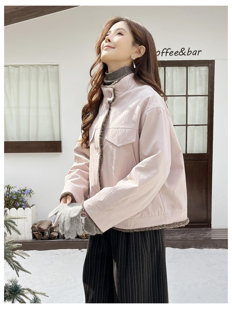 SG1206款2025冬季新款短款宽松韩版时尚小立领加绒加厚仿羊羔毛棉衣短外套女