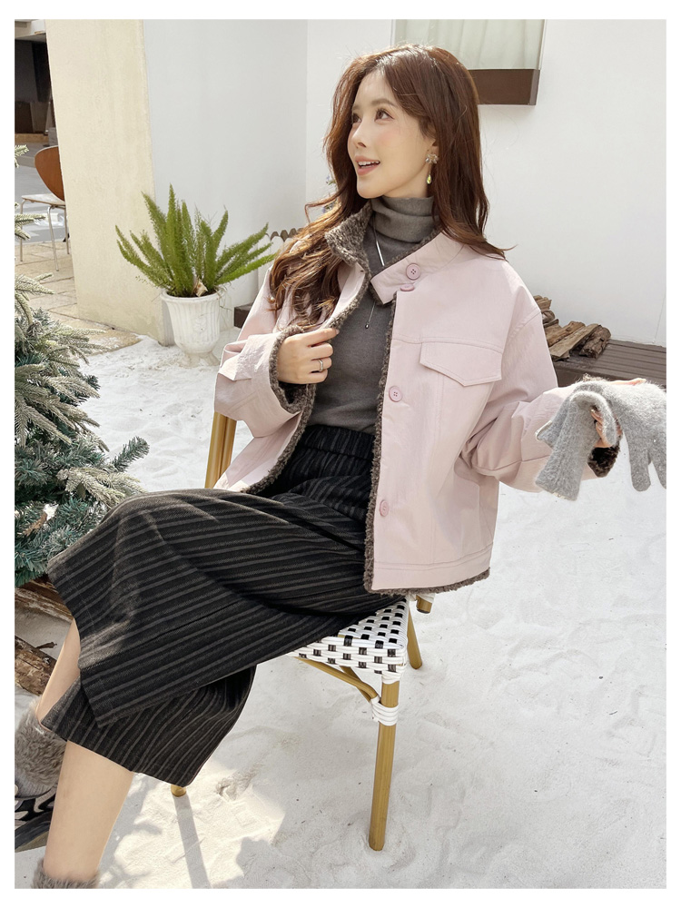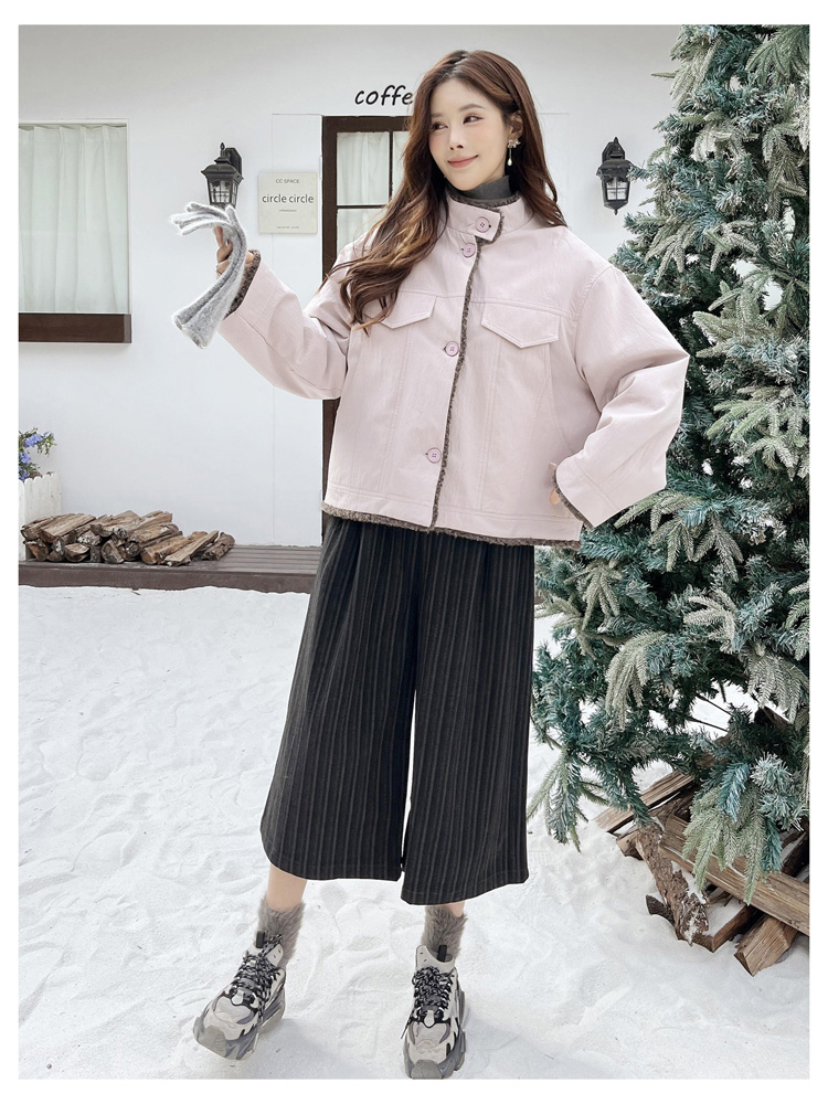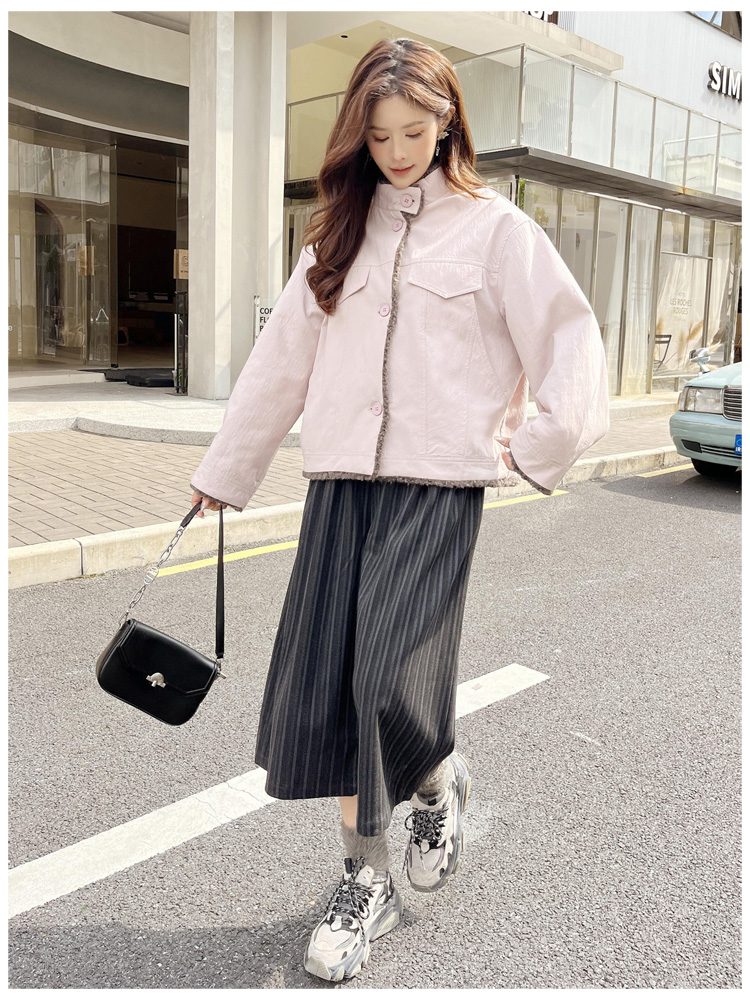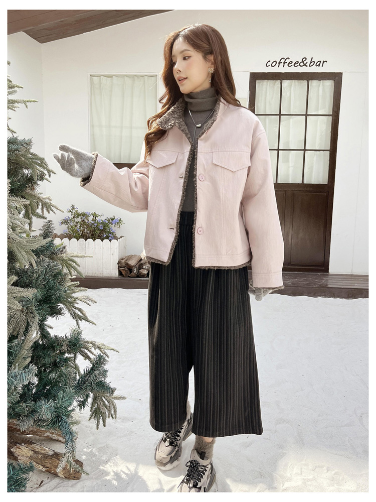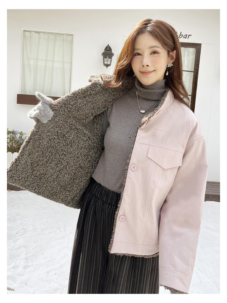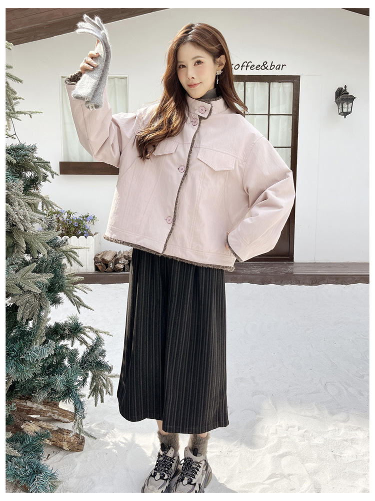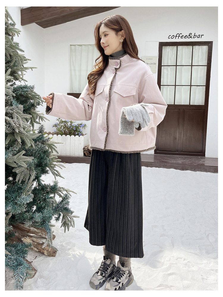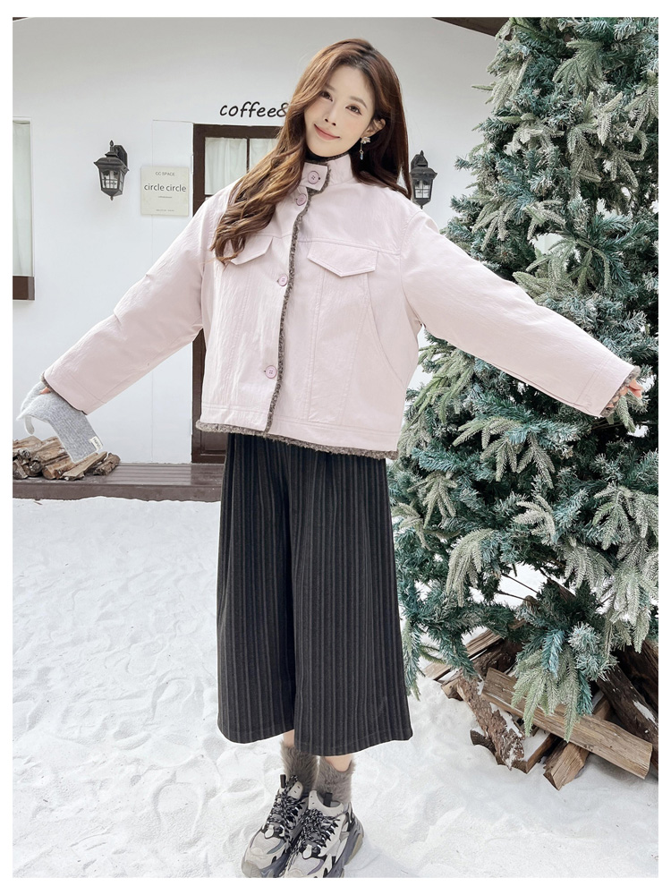 SG1206款2025冬季新款短款宽松韩版时尚小立领加绒加厚仿羊羔毛棉衣短外套女