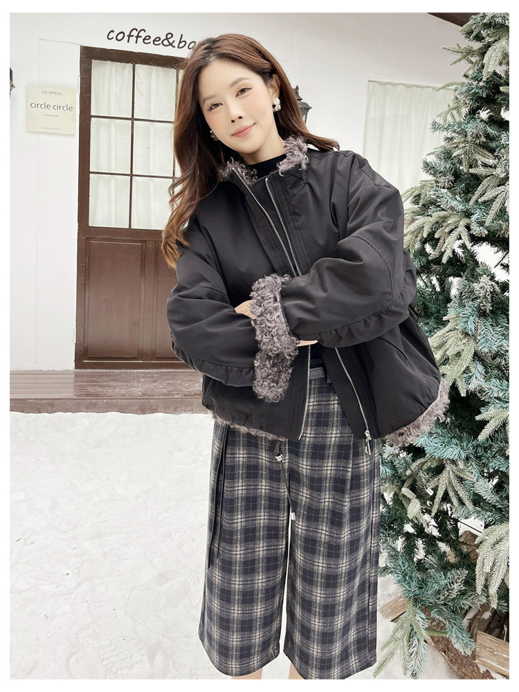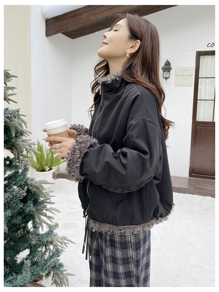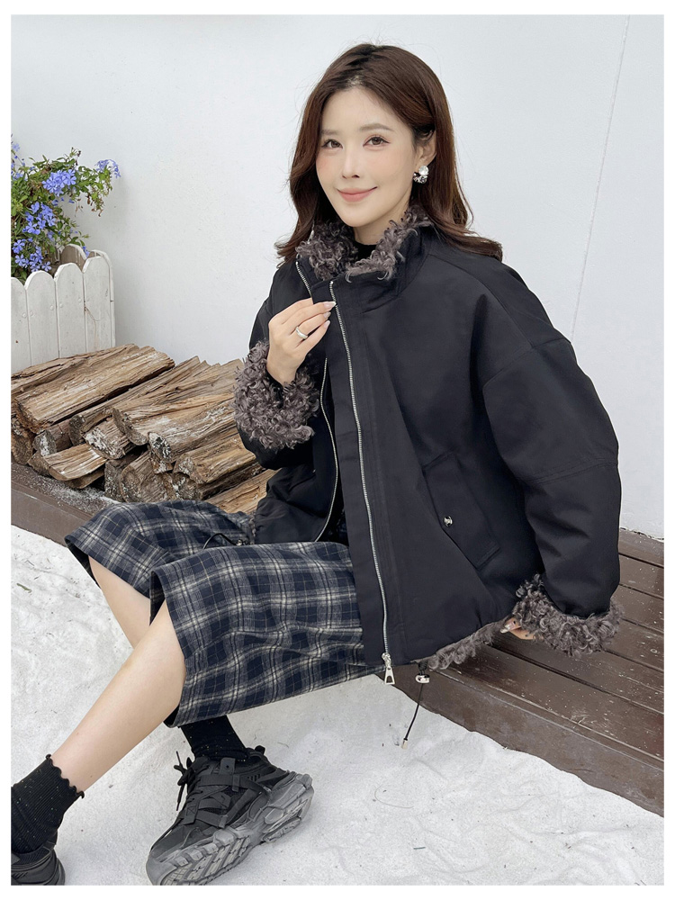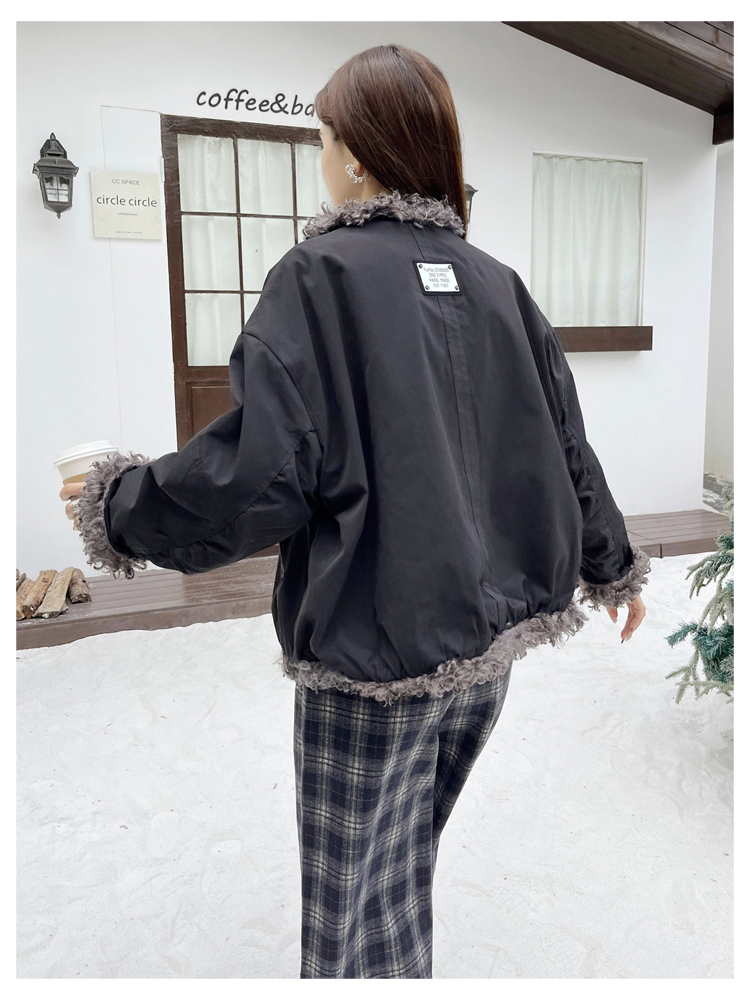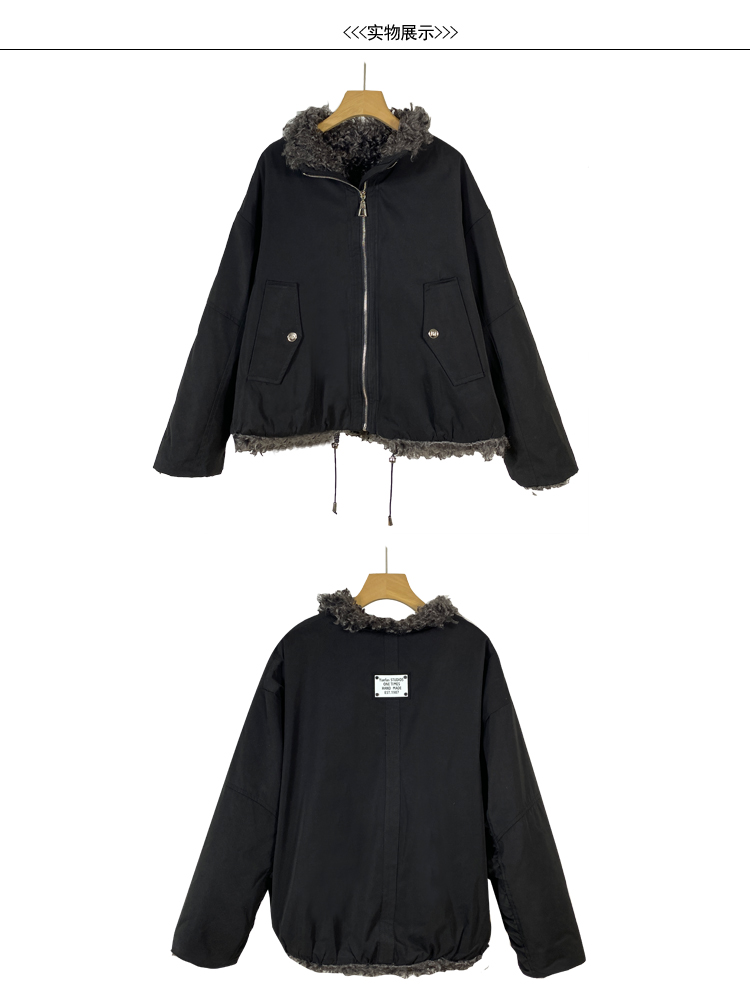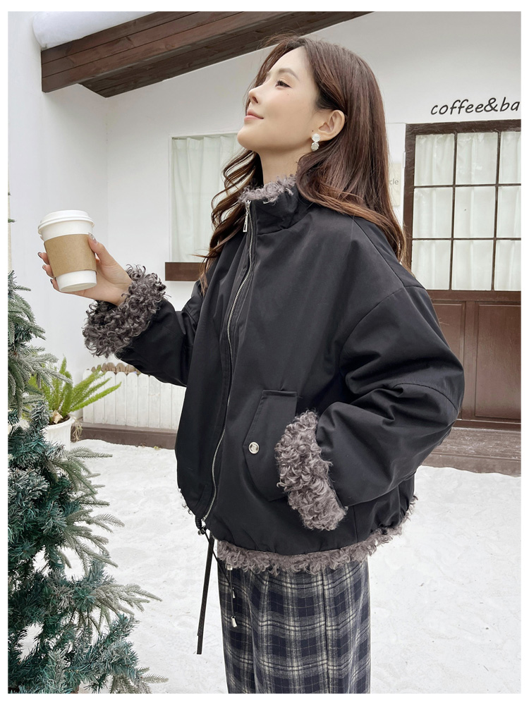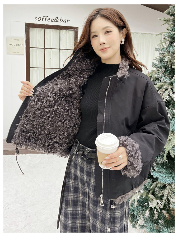 SG1205款2025冬季高级感小个子仿羊羔毛棉衣女宽松小立领加厚保暖仿羊卷毛外套