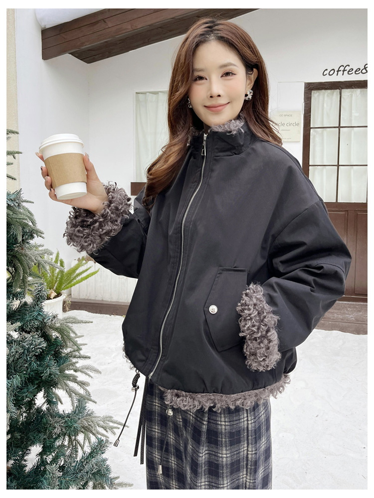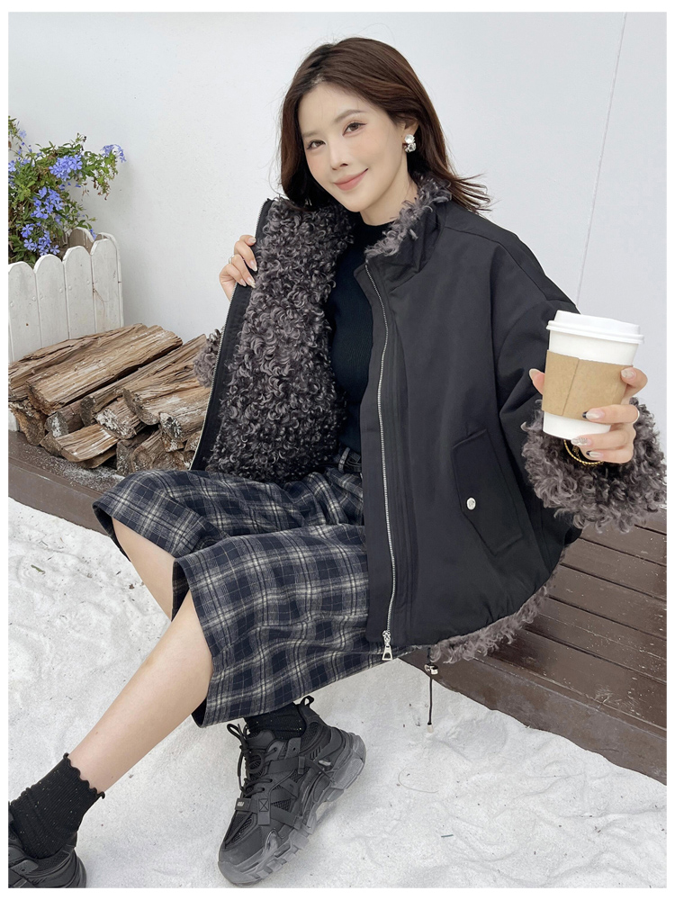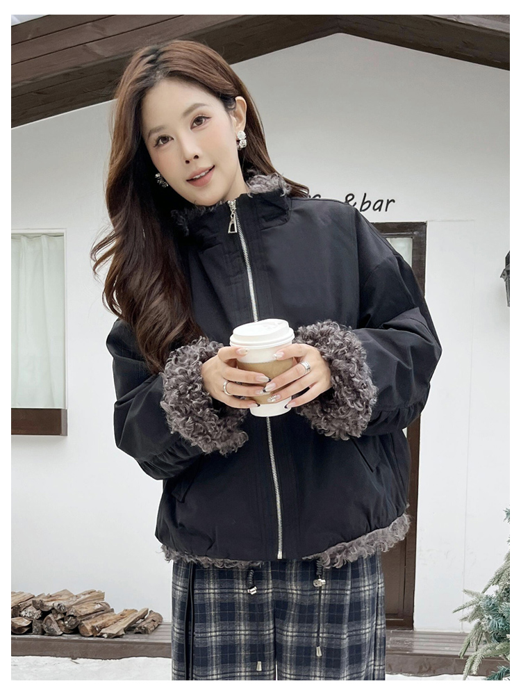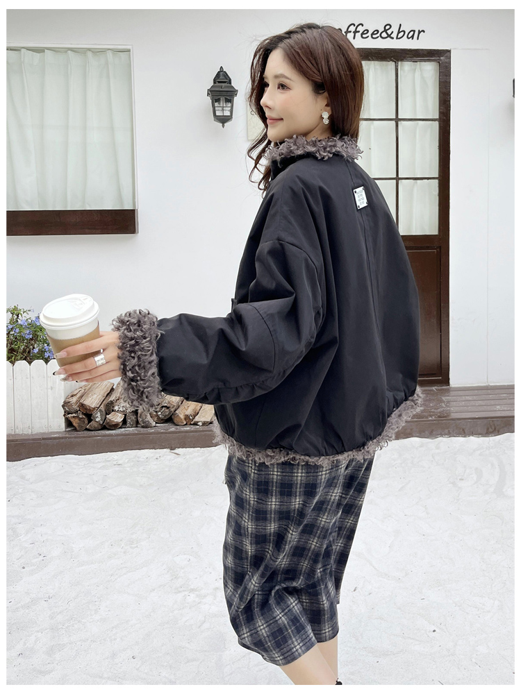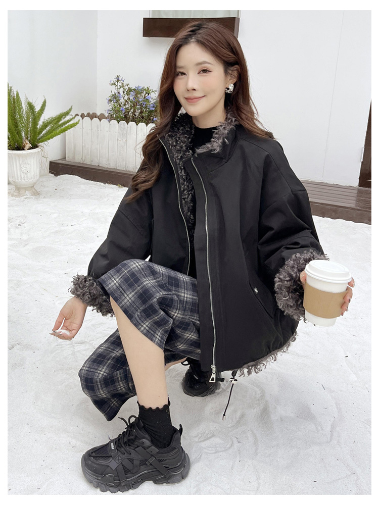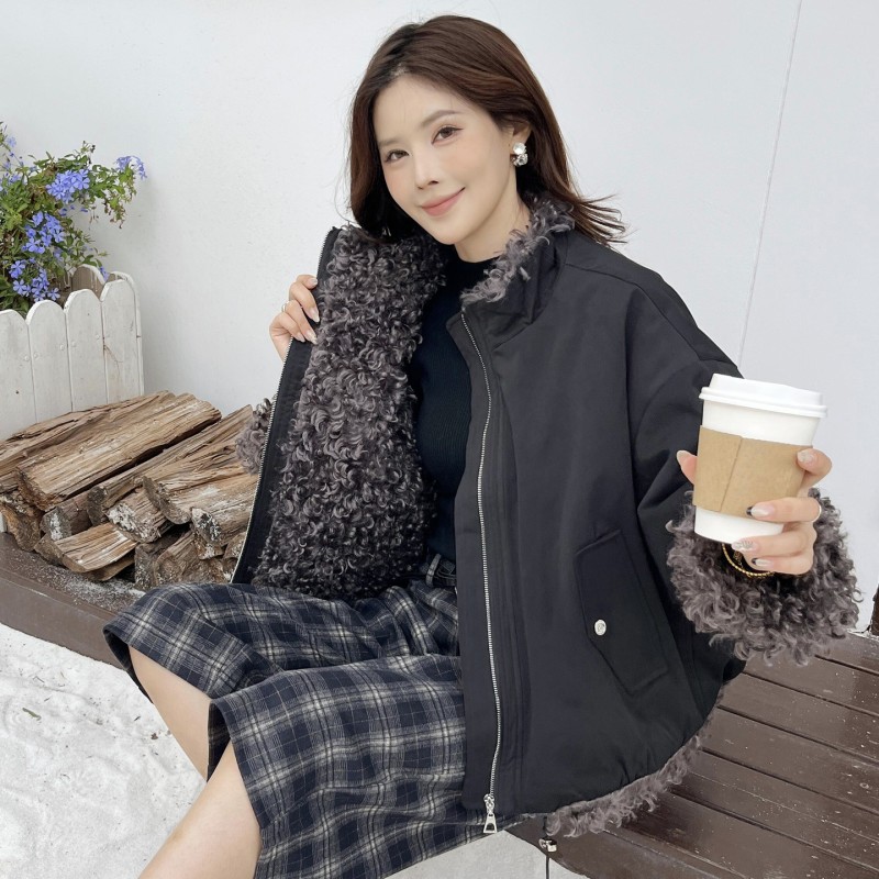 SG1205款2025冬季高级感小个子仿羊羔毛棉衣女宽松小立领加厚保暖仿羊卷毛外套