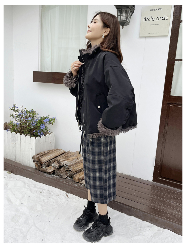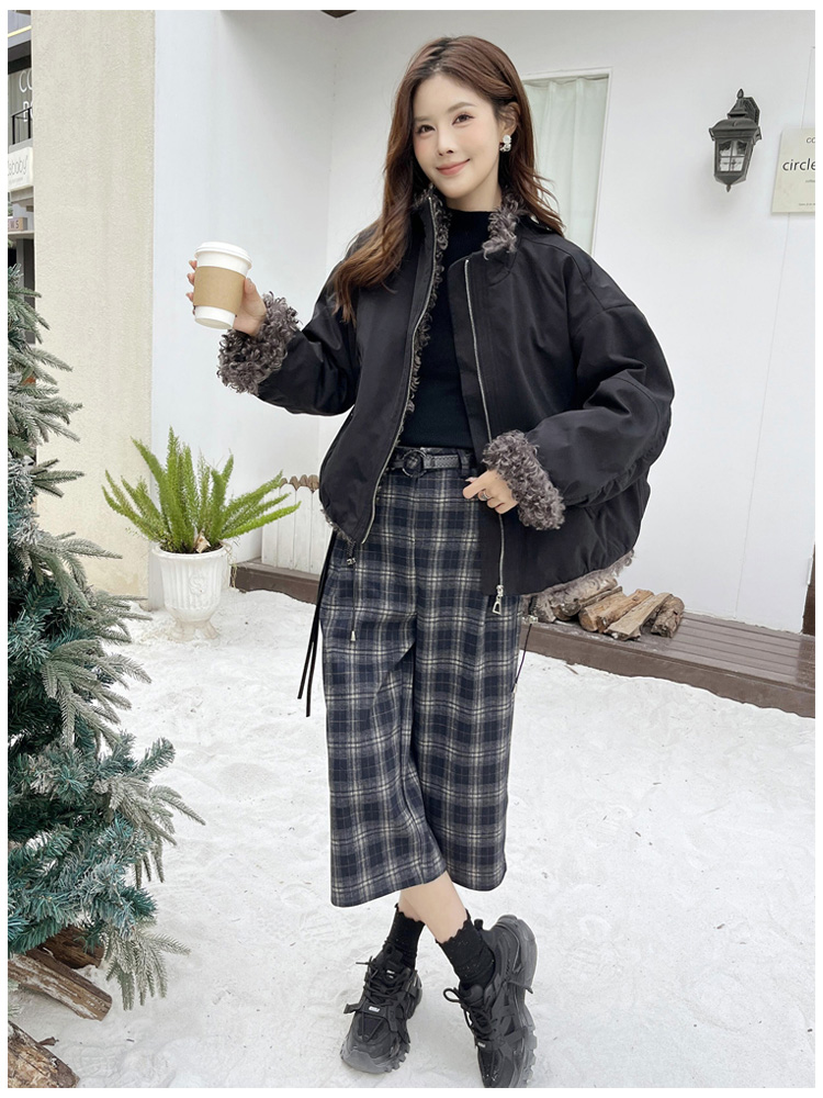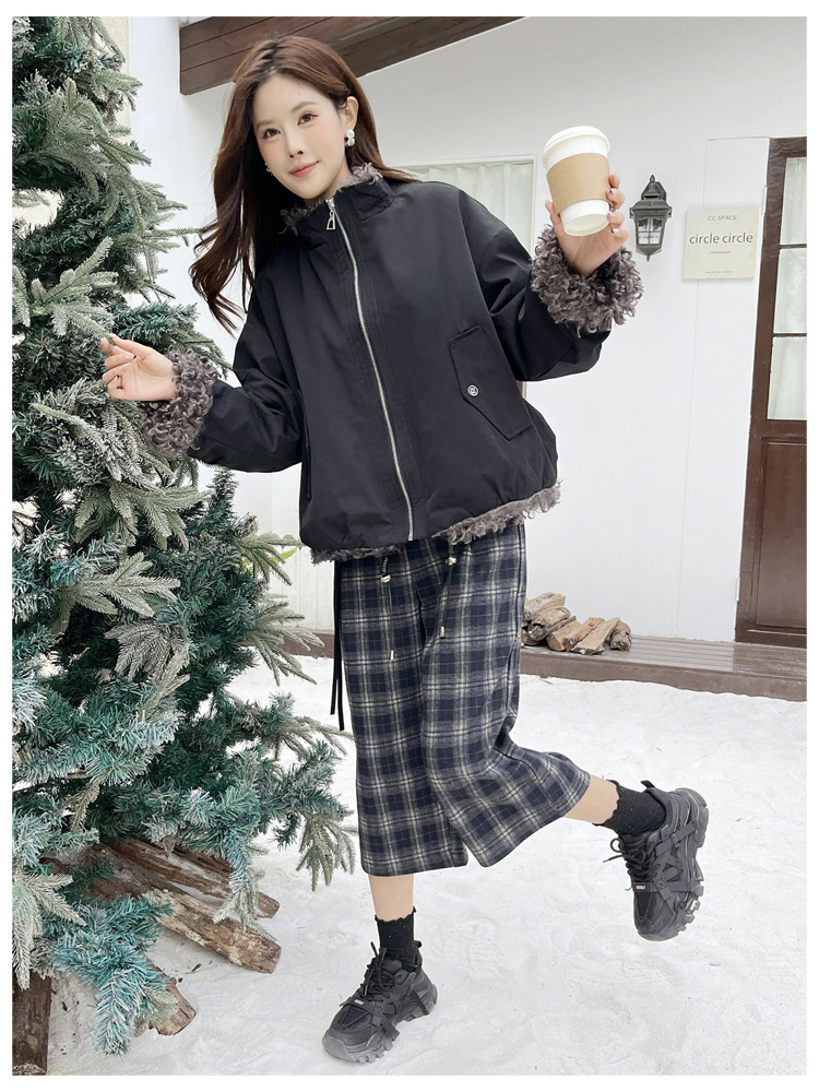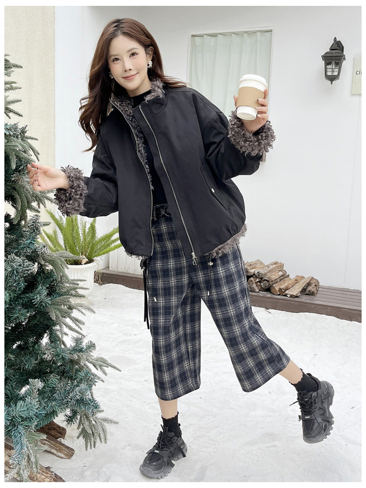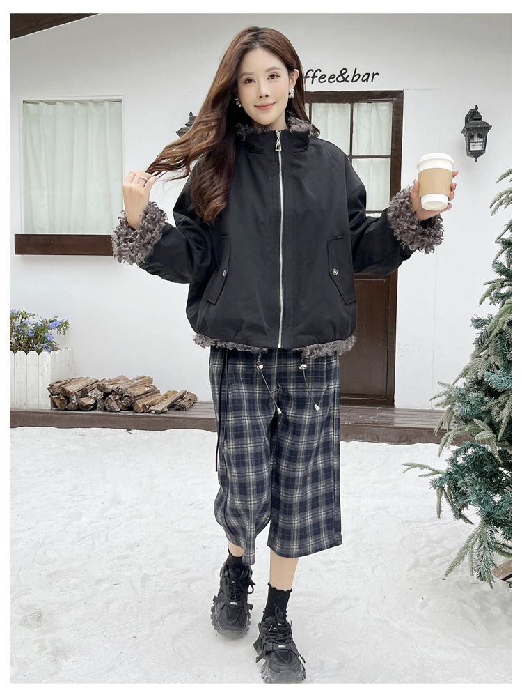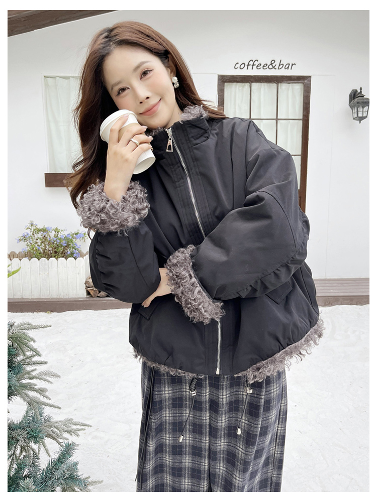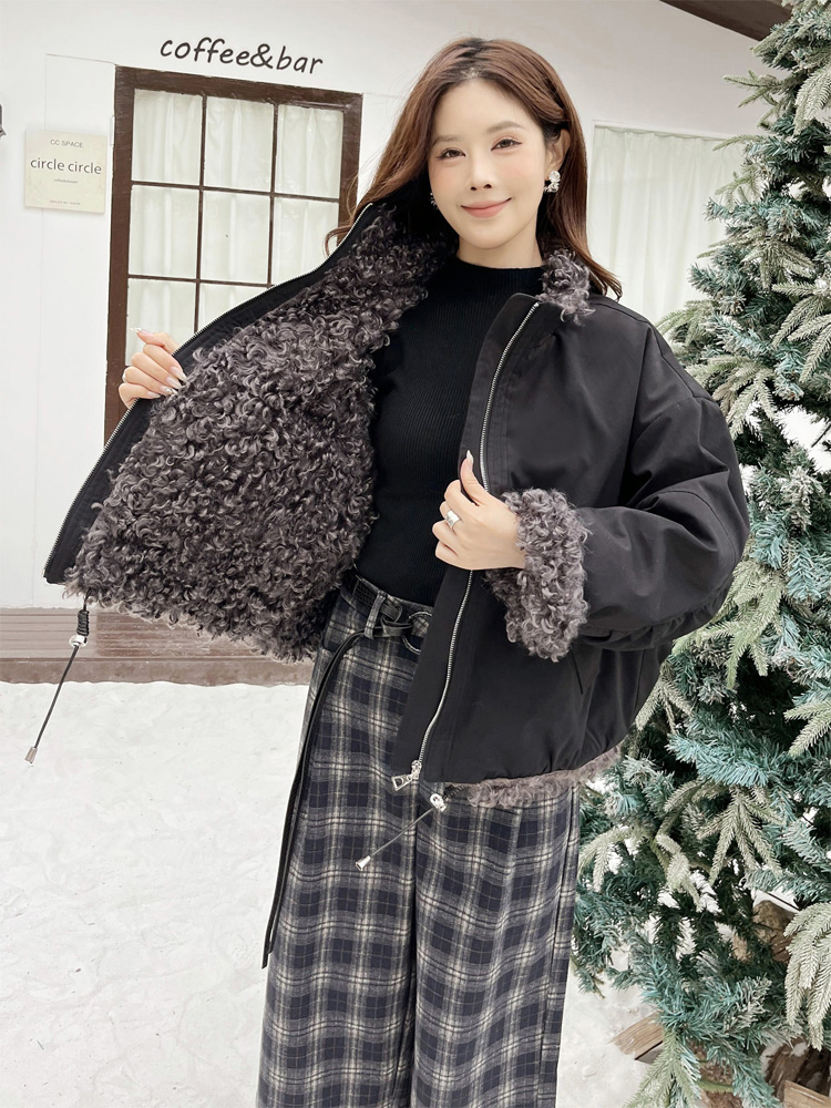 SG1205款2025冬季高级感小个子仿羊羔毛棉衣女宽松小立领加厚保暖仿羊卷毛外套