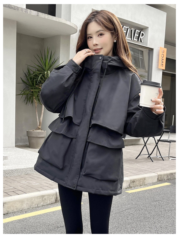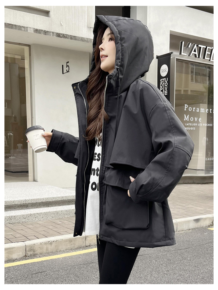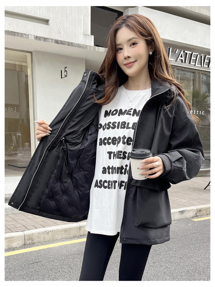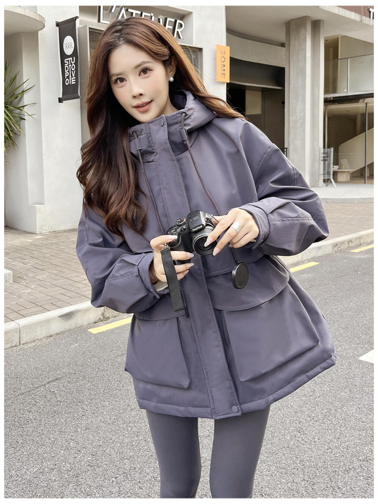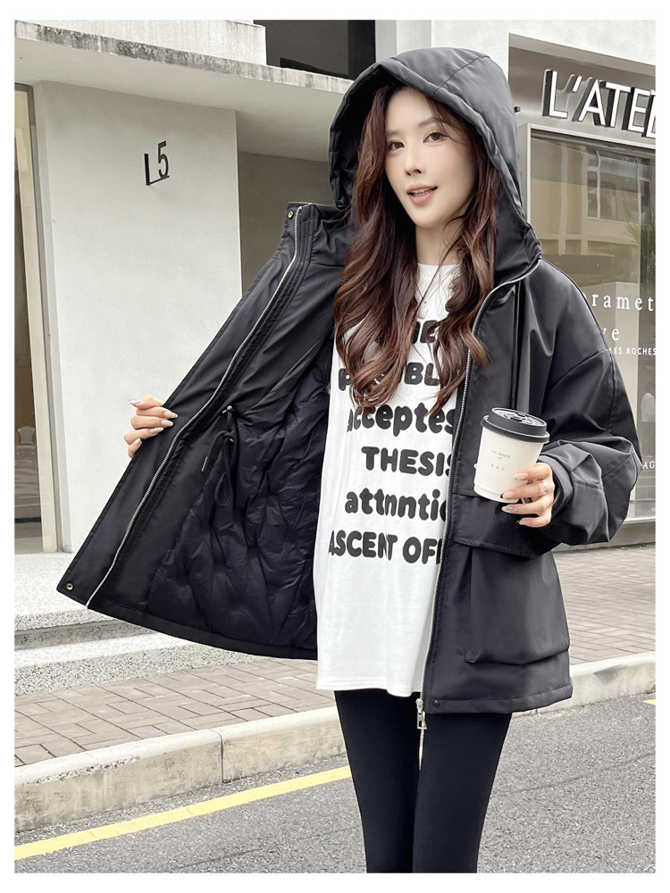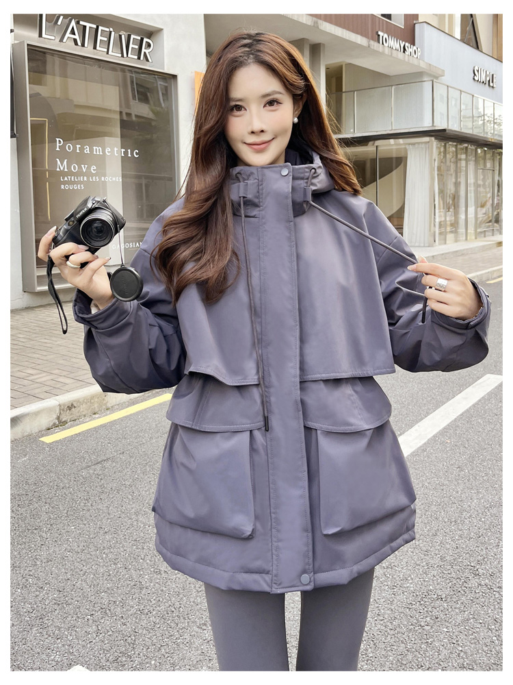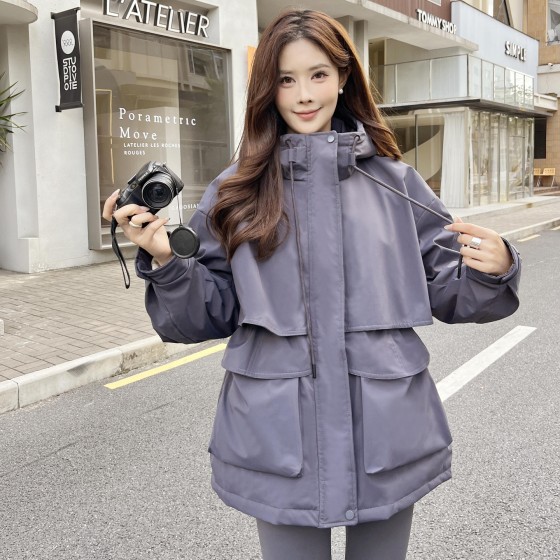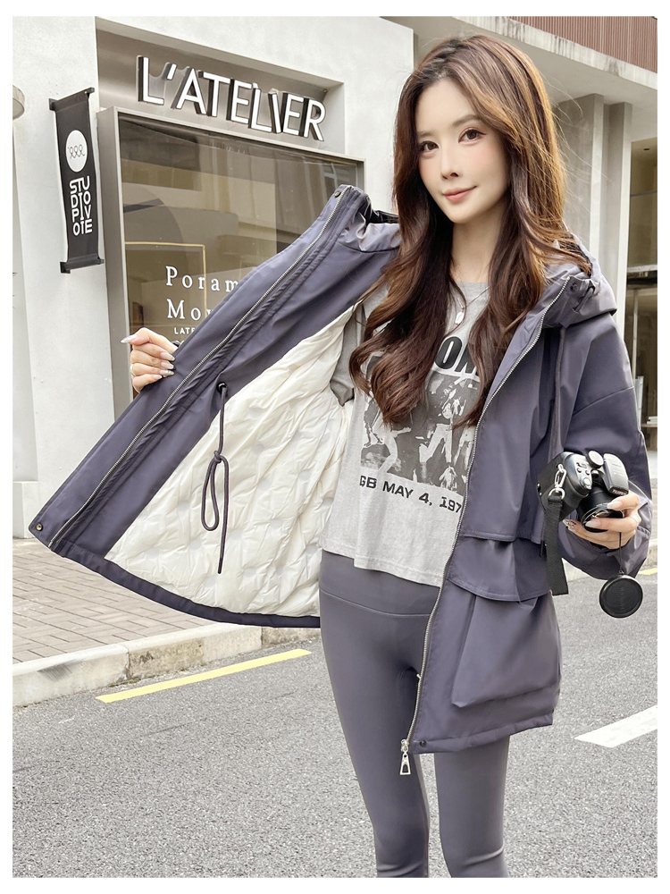 SG1201款2025冬季新款收腰显瘦连帽白鸭绒羽绒服女士冬装户外工装外套(90%白鸭绒)