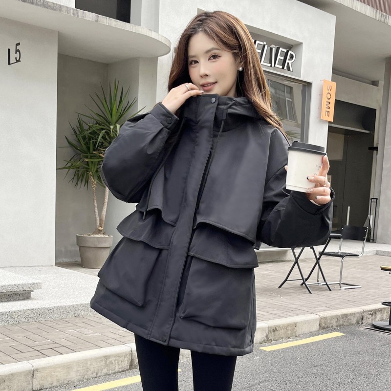 SG1201款2025冬季新款收腰显瘦连帽白鸭绒羽绒服女士冬装户外工装外套(90%白鸭绒)
