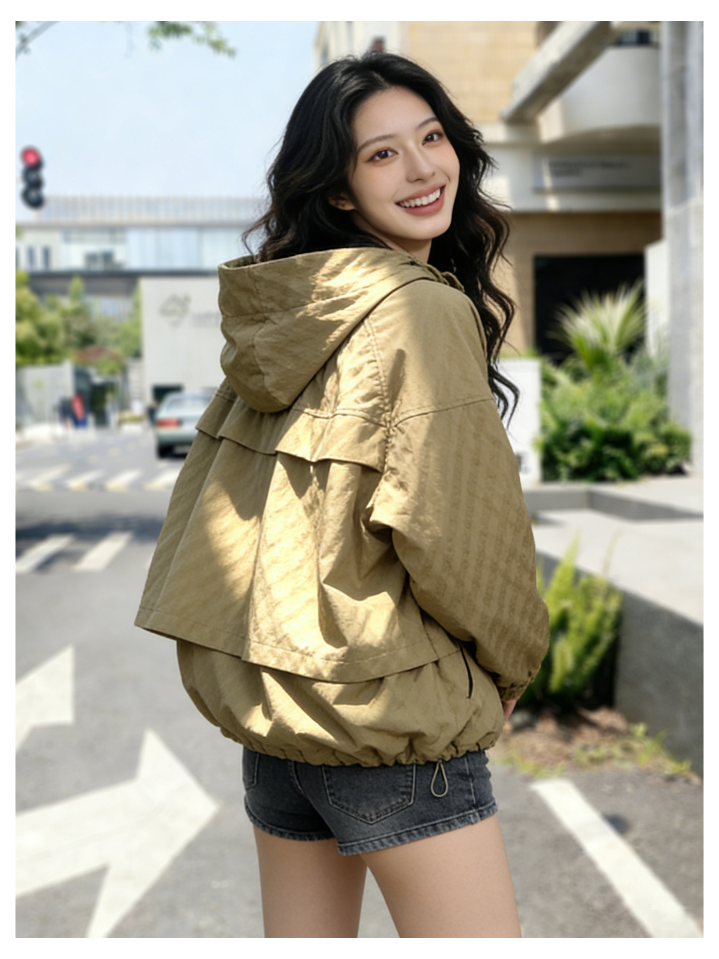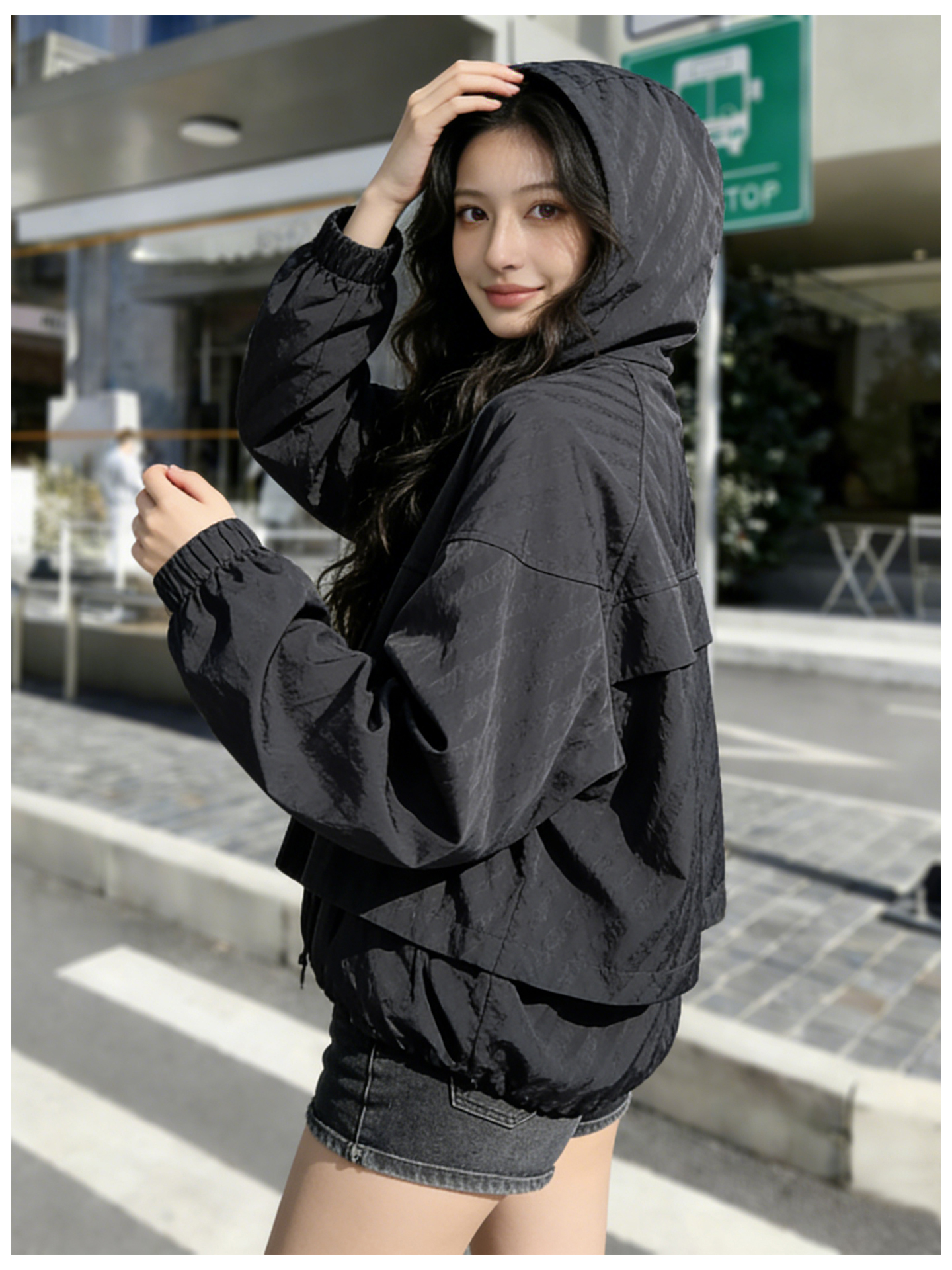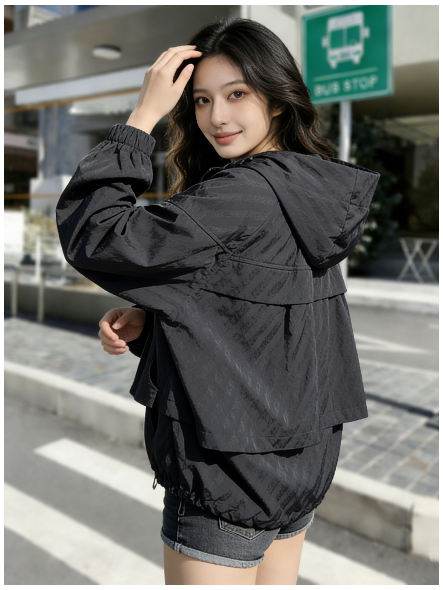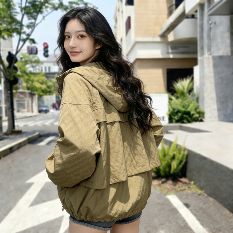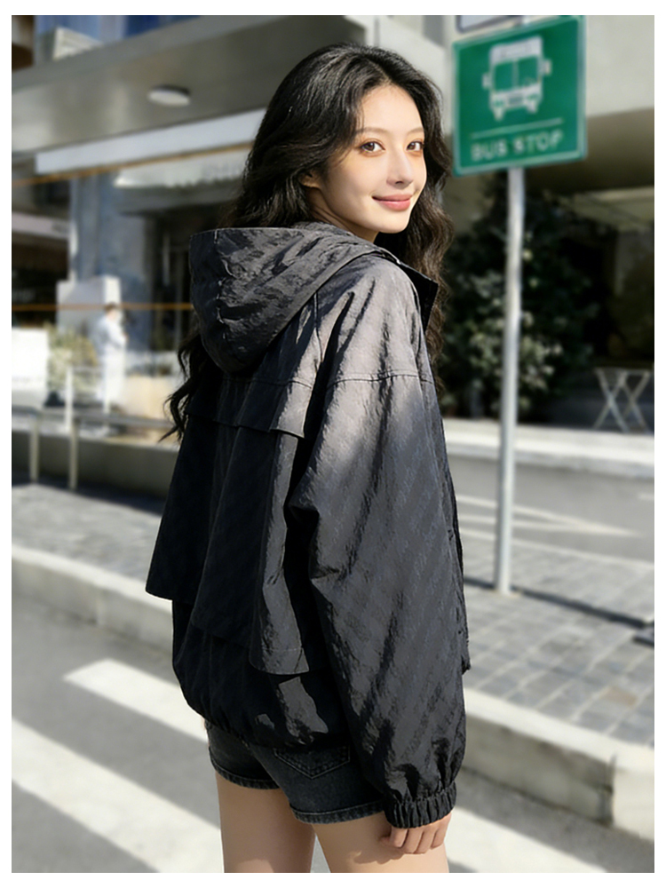 SG1207款2026春装新品短款女士宽松时尚短款设计感超好看提花连帽短外套