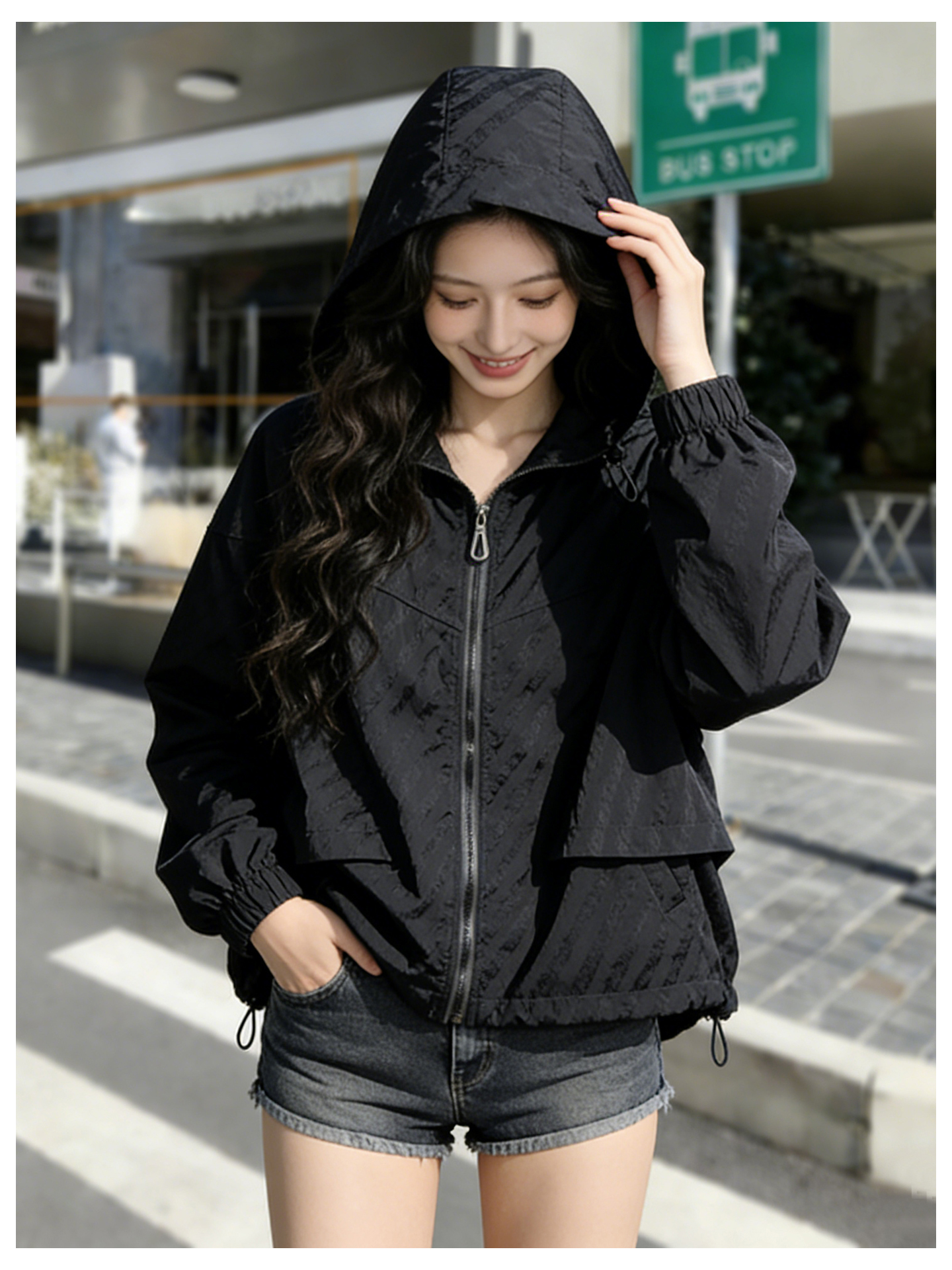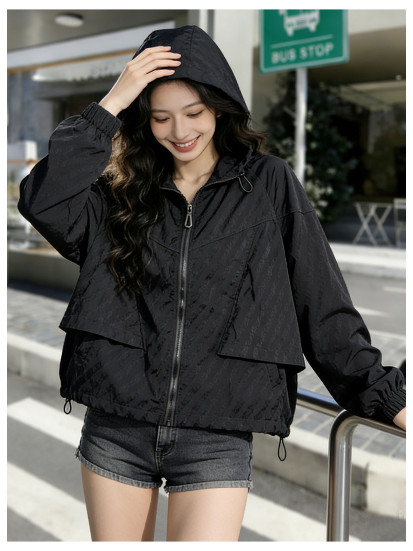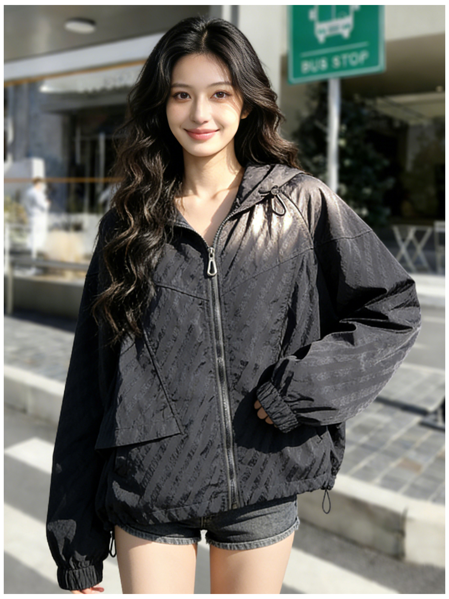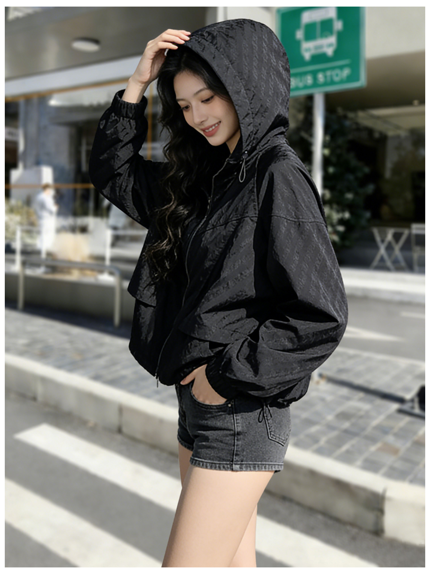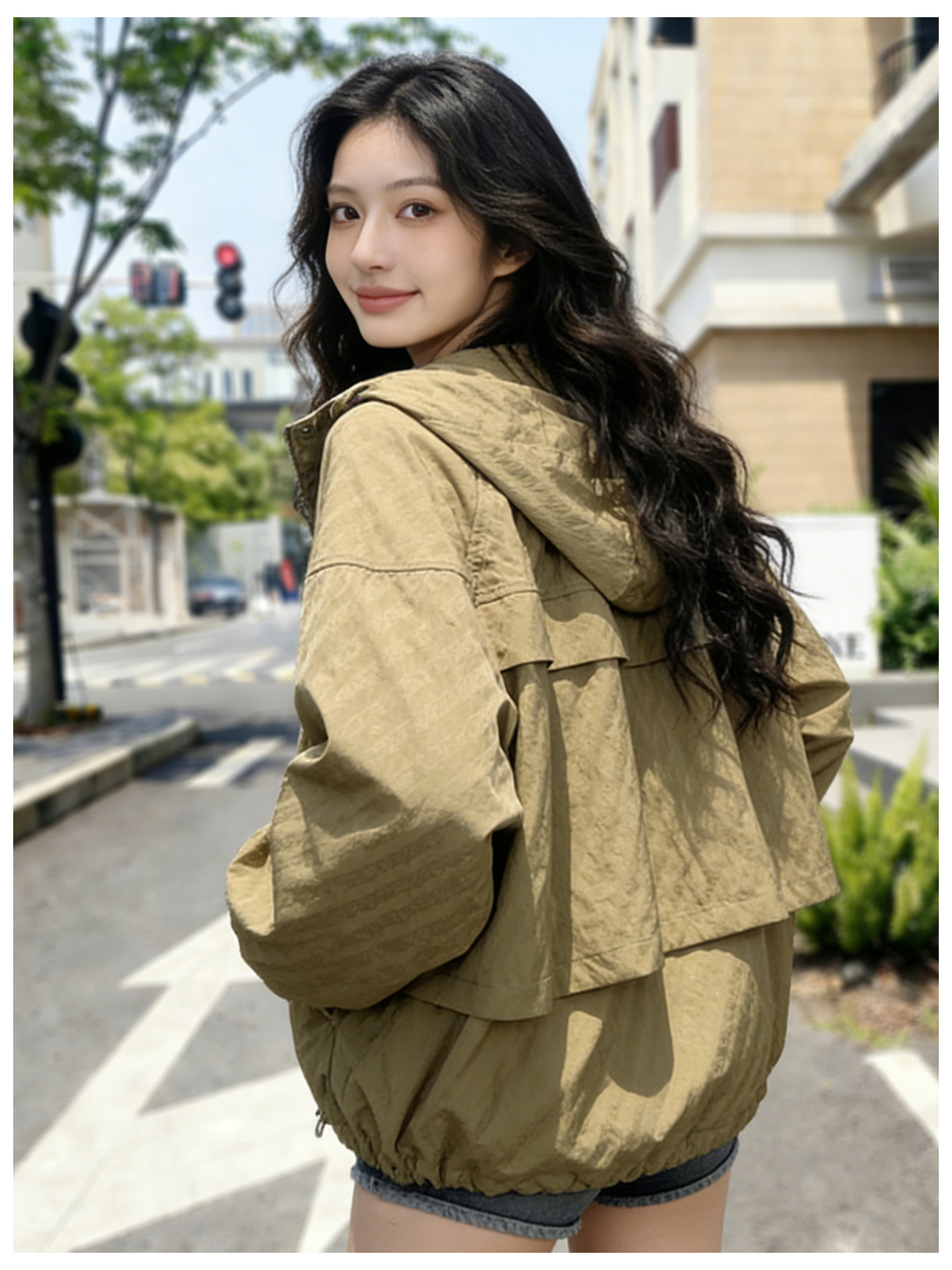 SG1207款2026春装新品短款女士宽松时尚短款设计感超好看提花连帽短外套