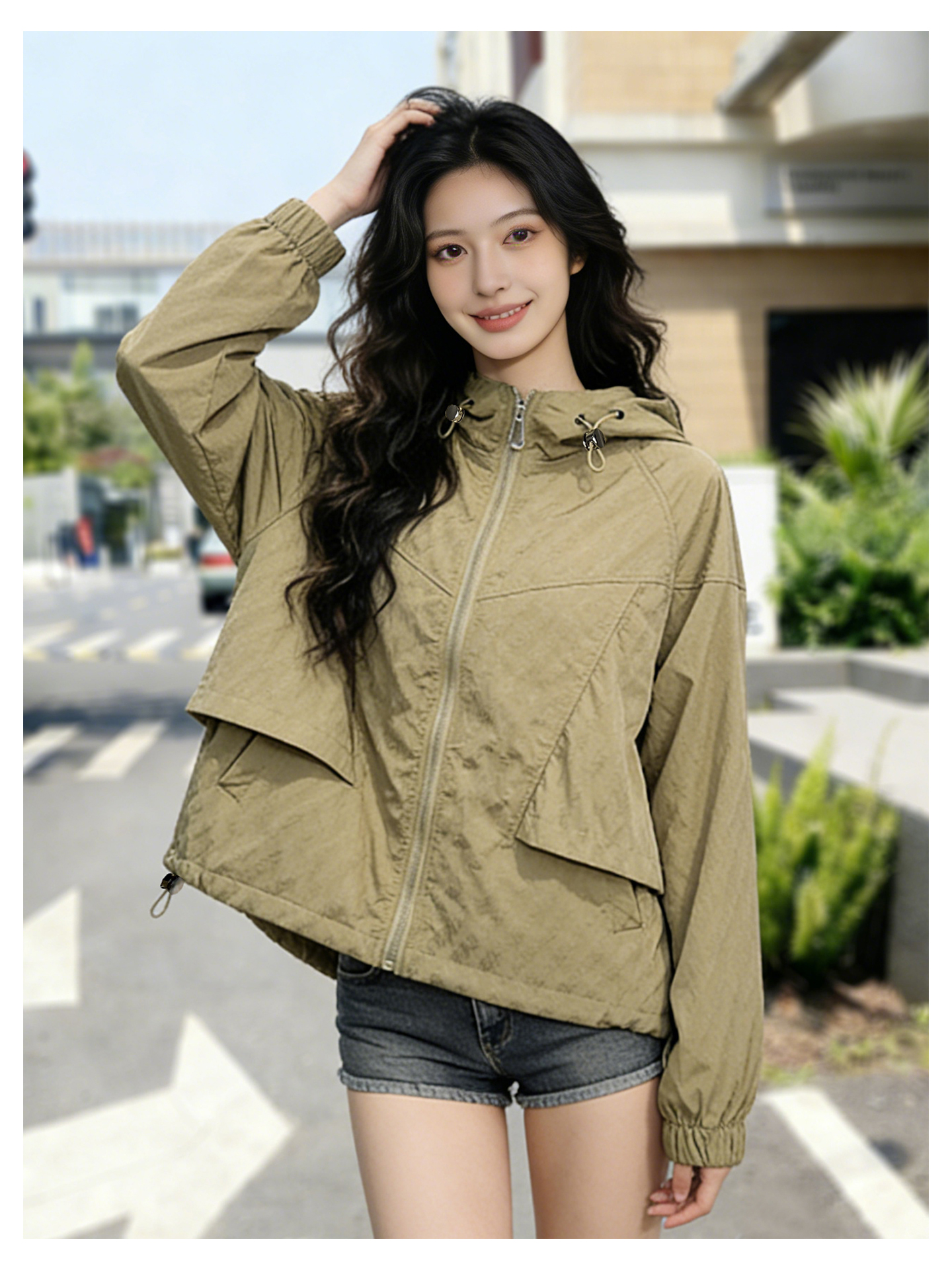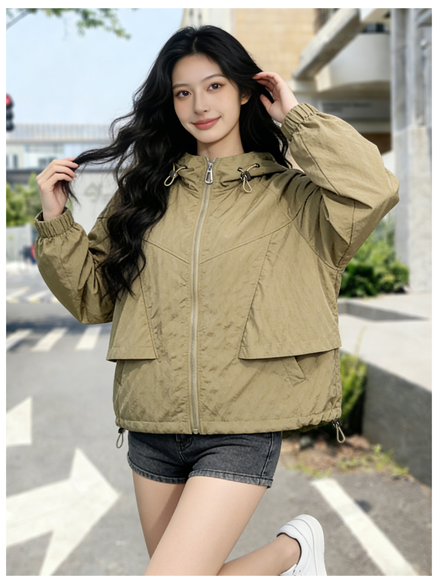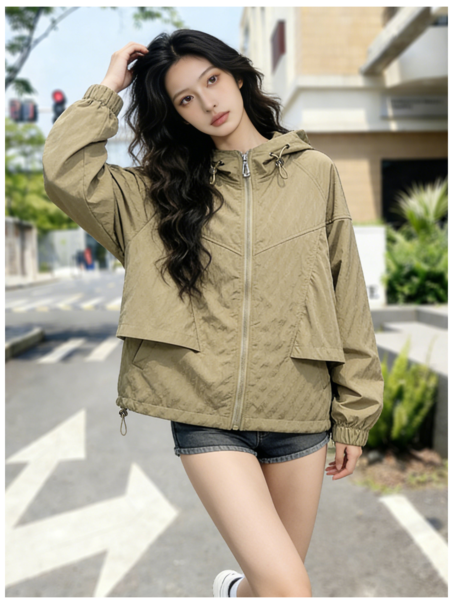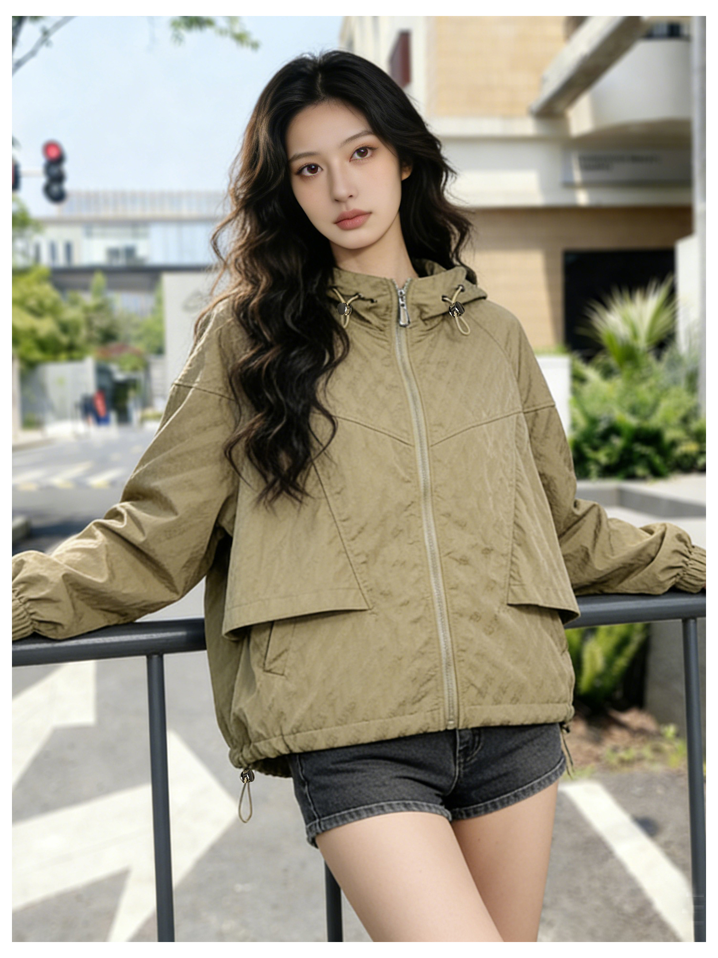 SG1207款2026春装新品短款女士宽松时尚短款设计感超好看提花连帽短外套