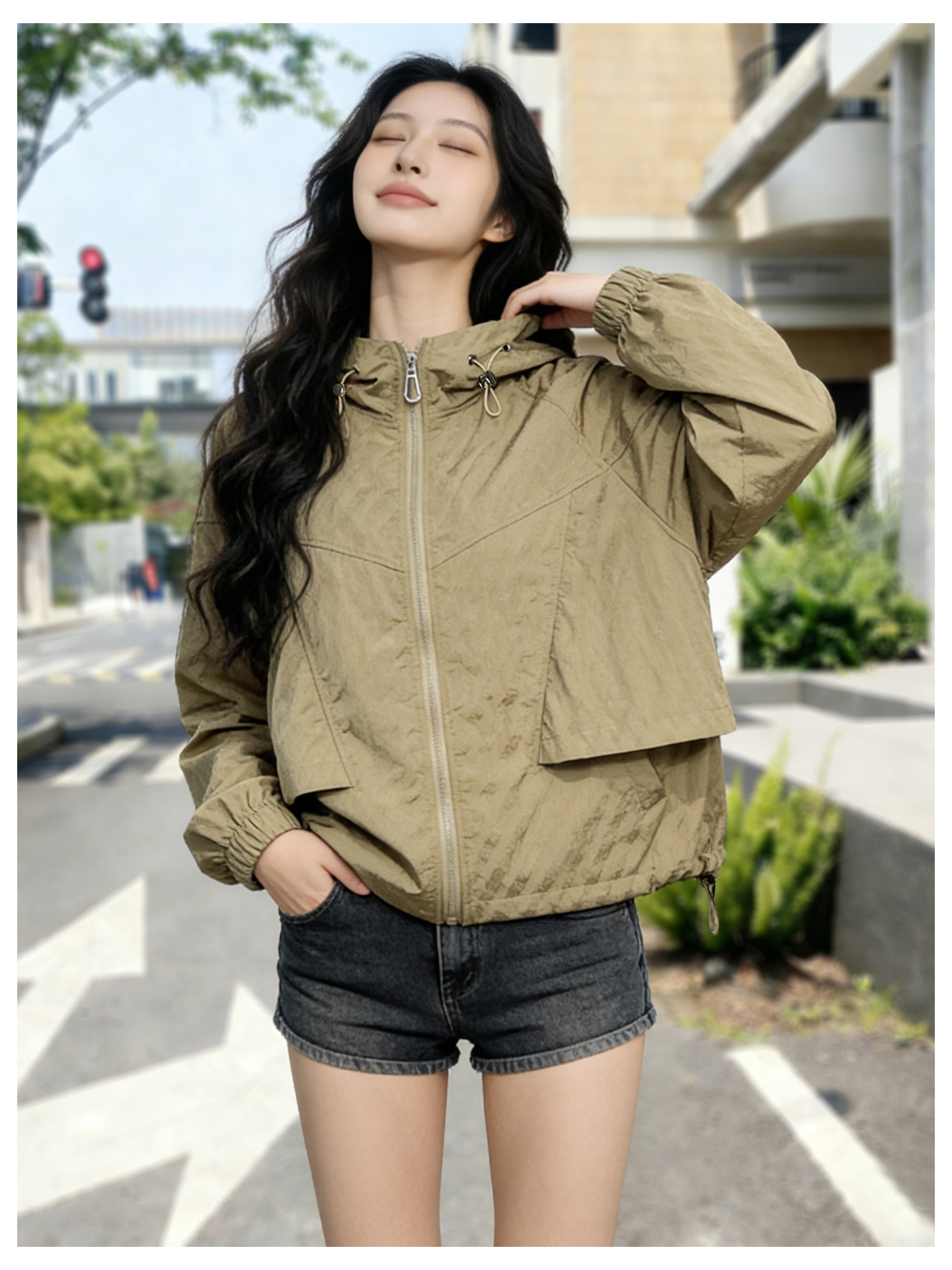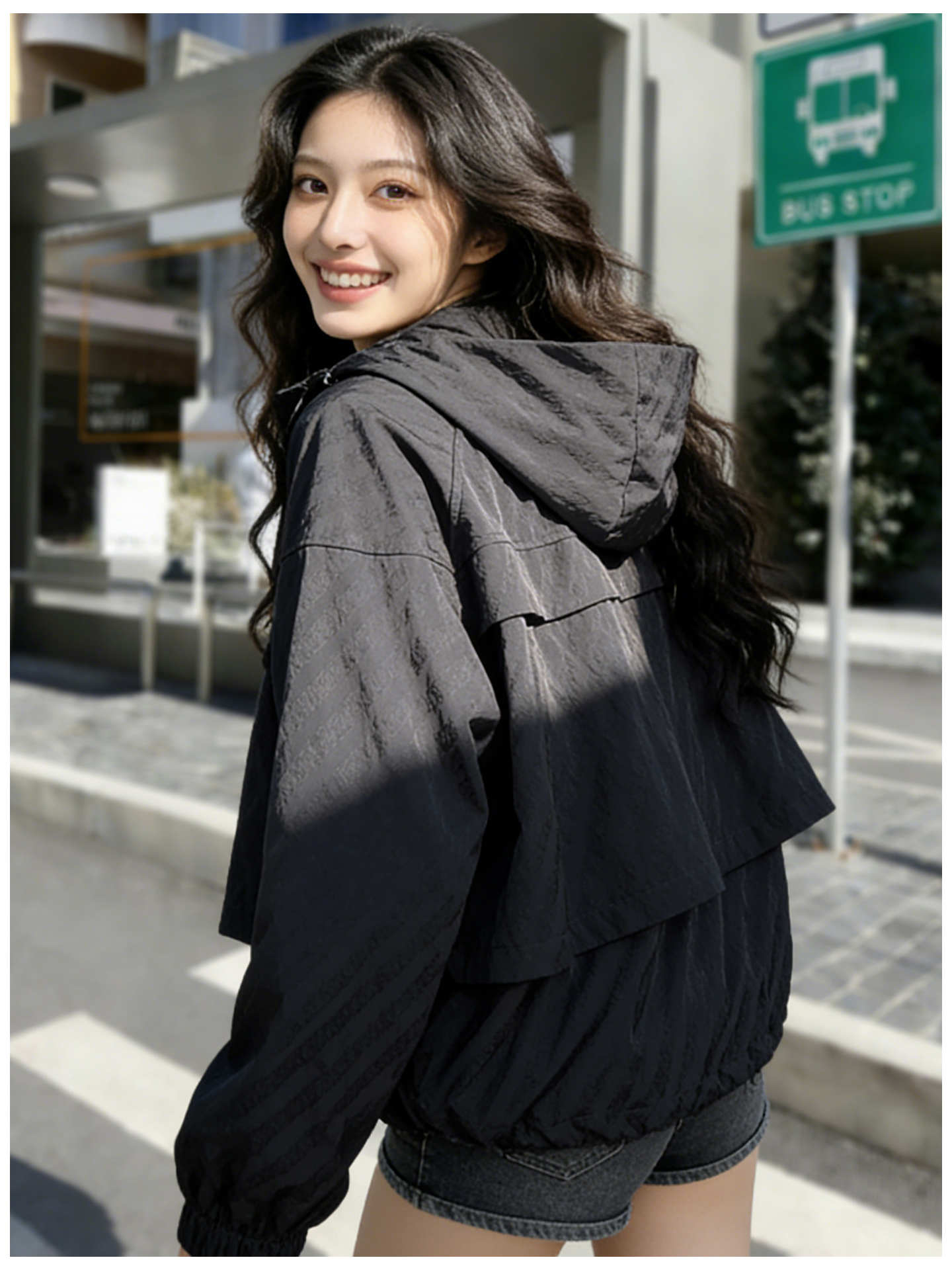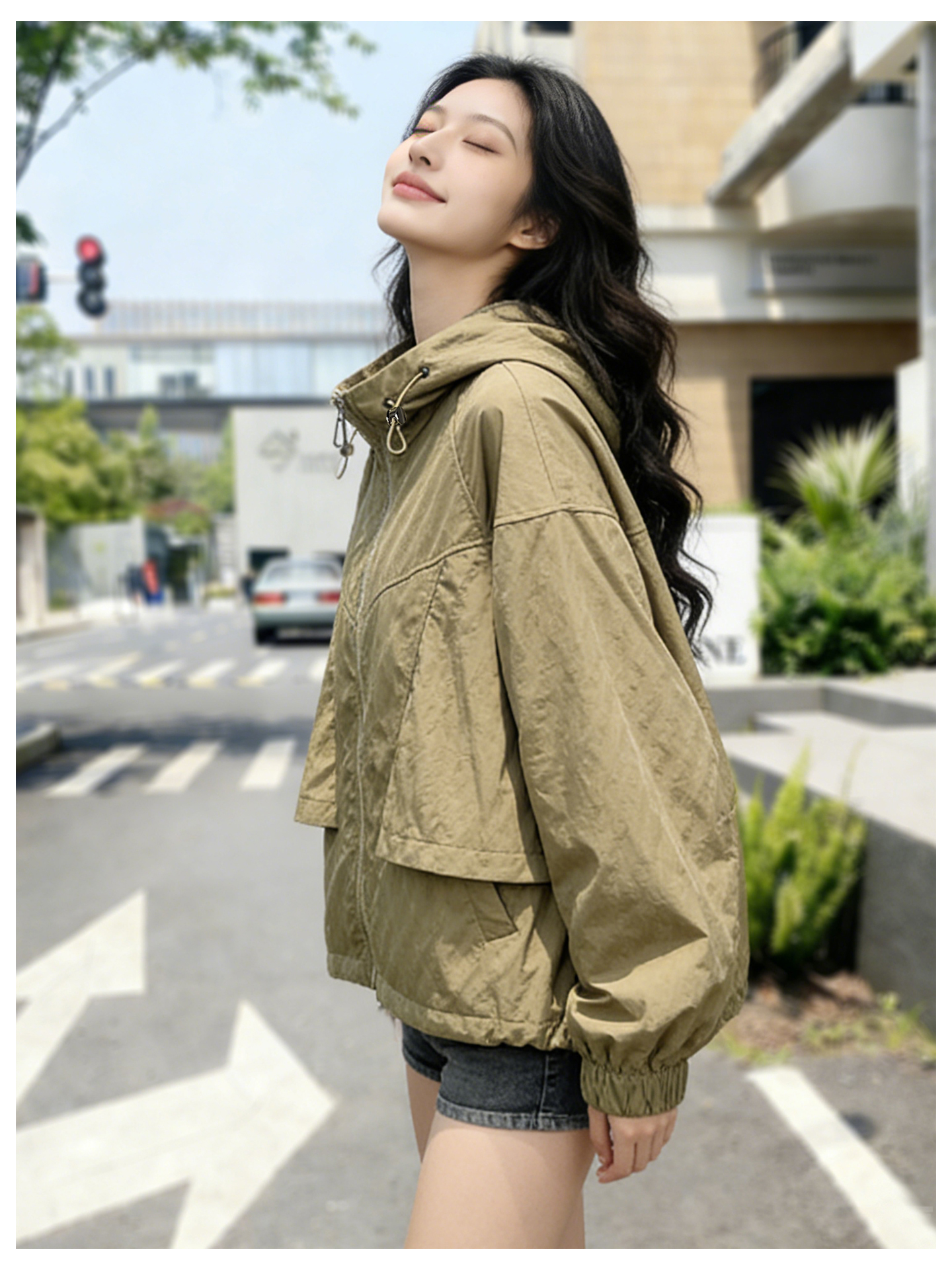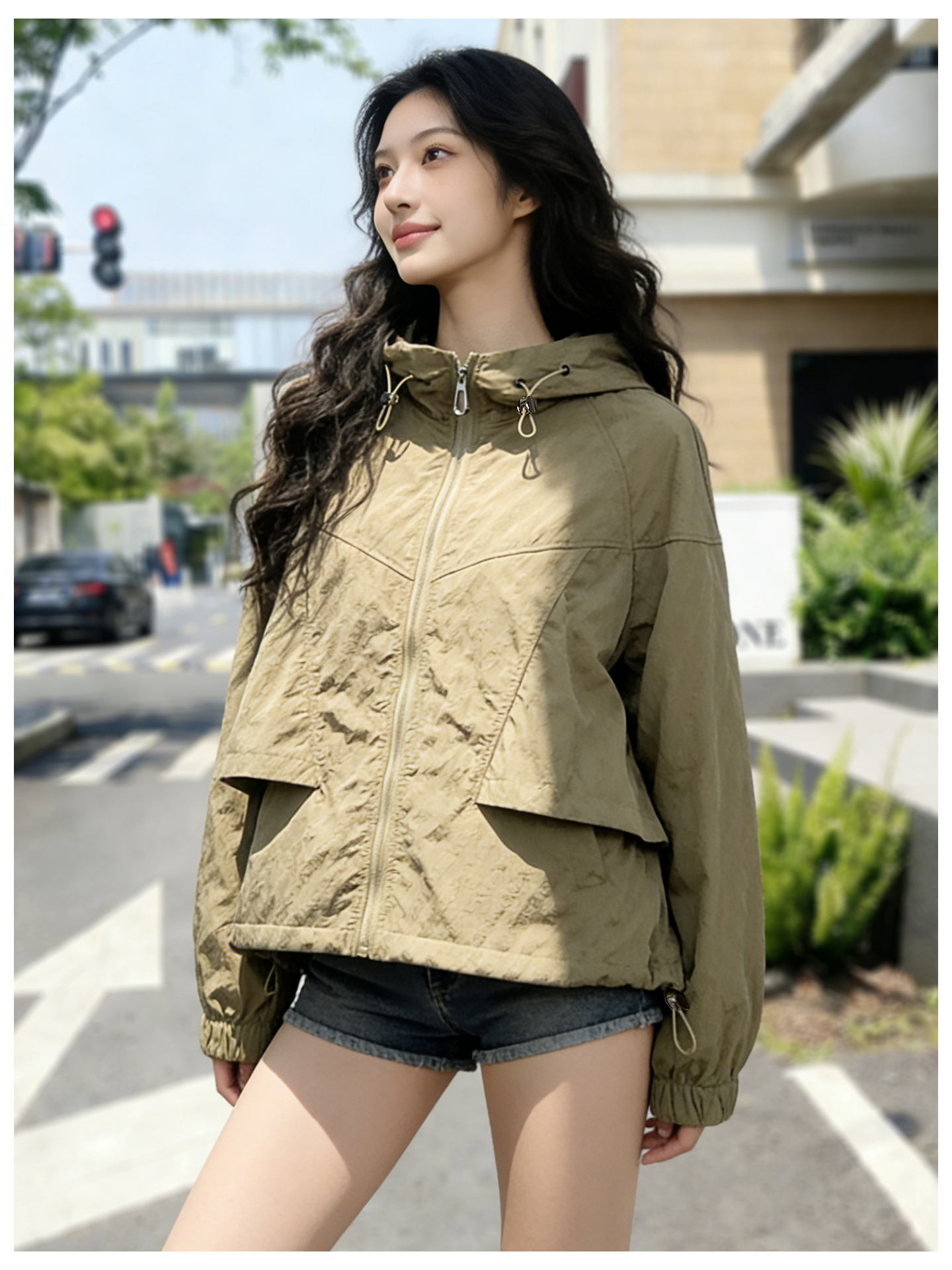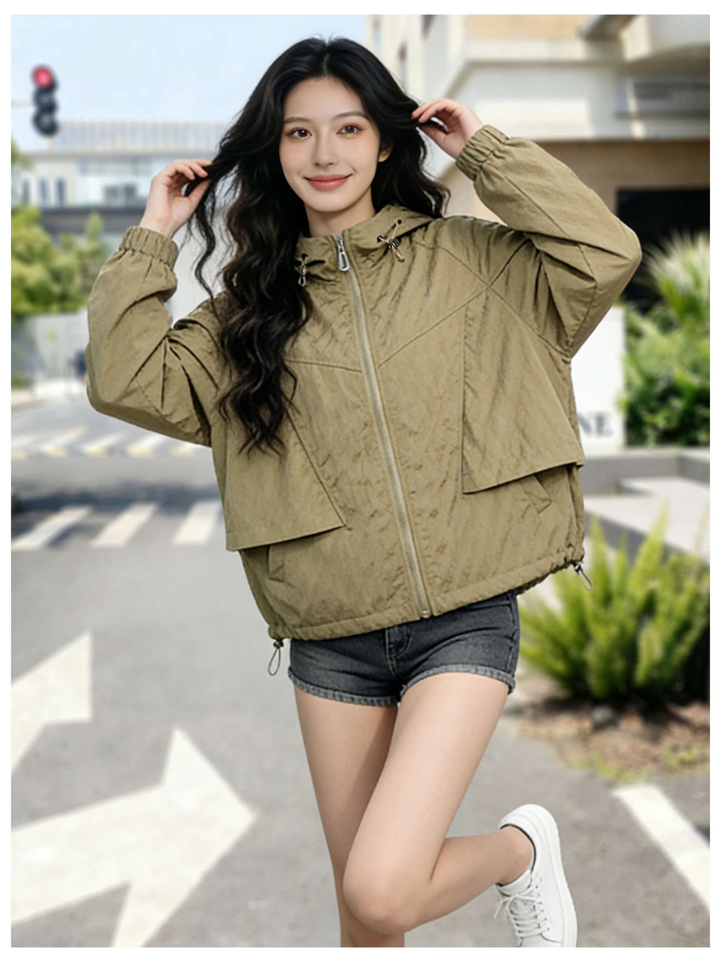 SG1207款2026春装新品短款女士宽松时尚短款设计感超好看提花连帽短外套