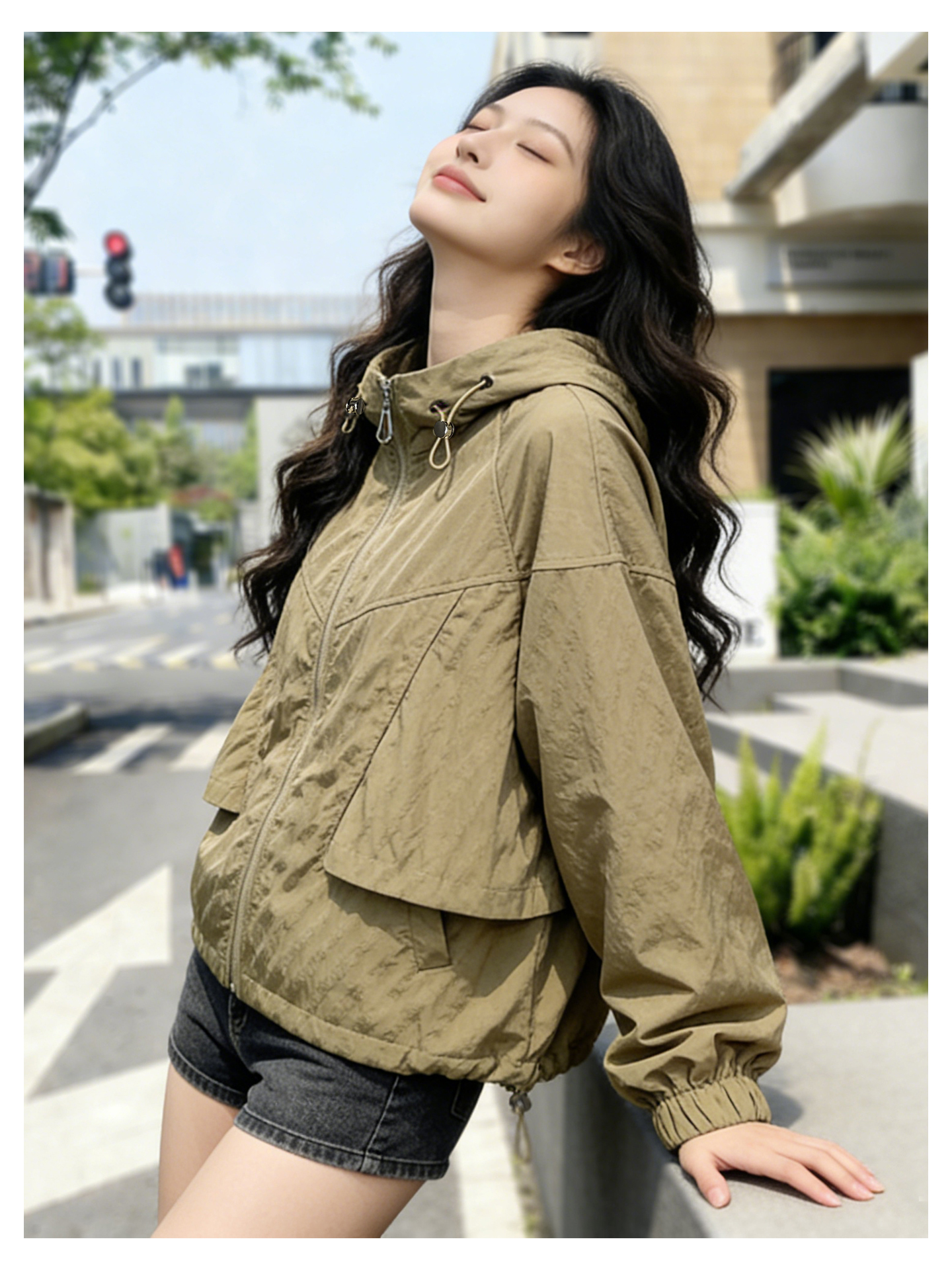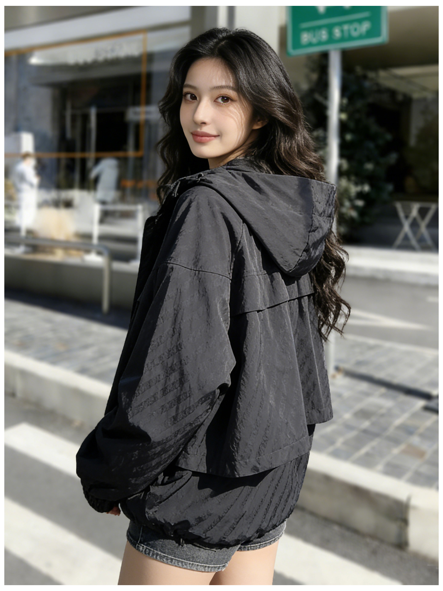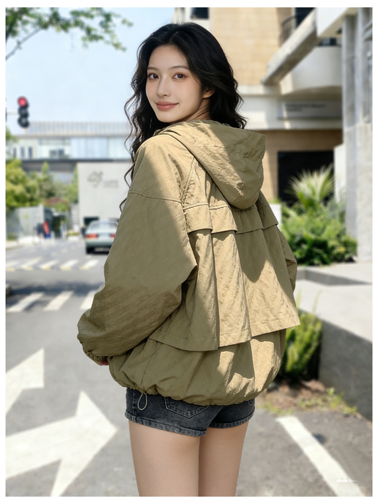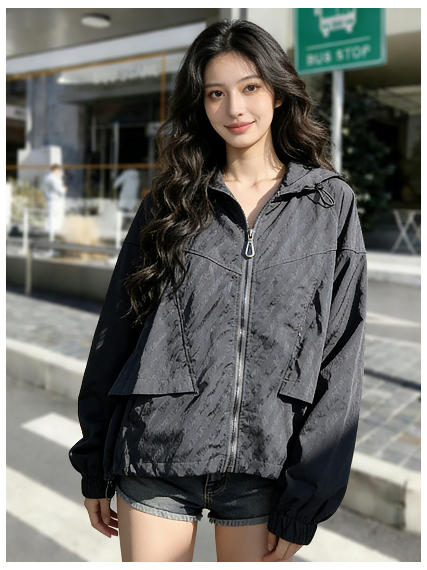 SG1207款2026春装新品短款女士宽松时尚短款设计感超好看提花连帽短外套