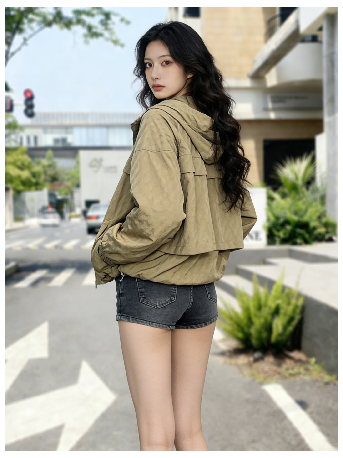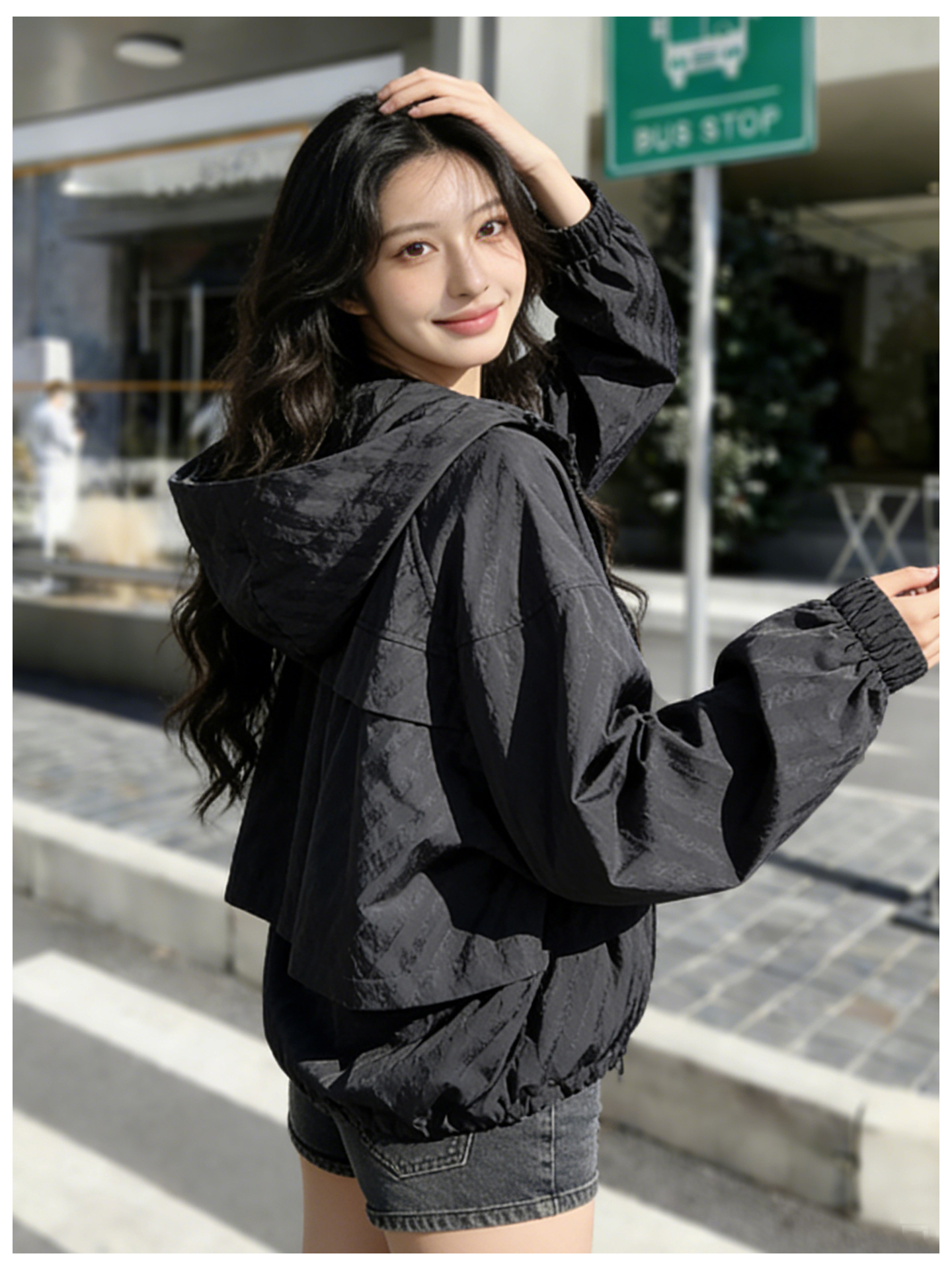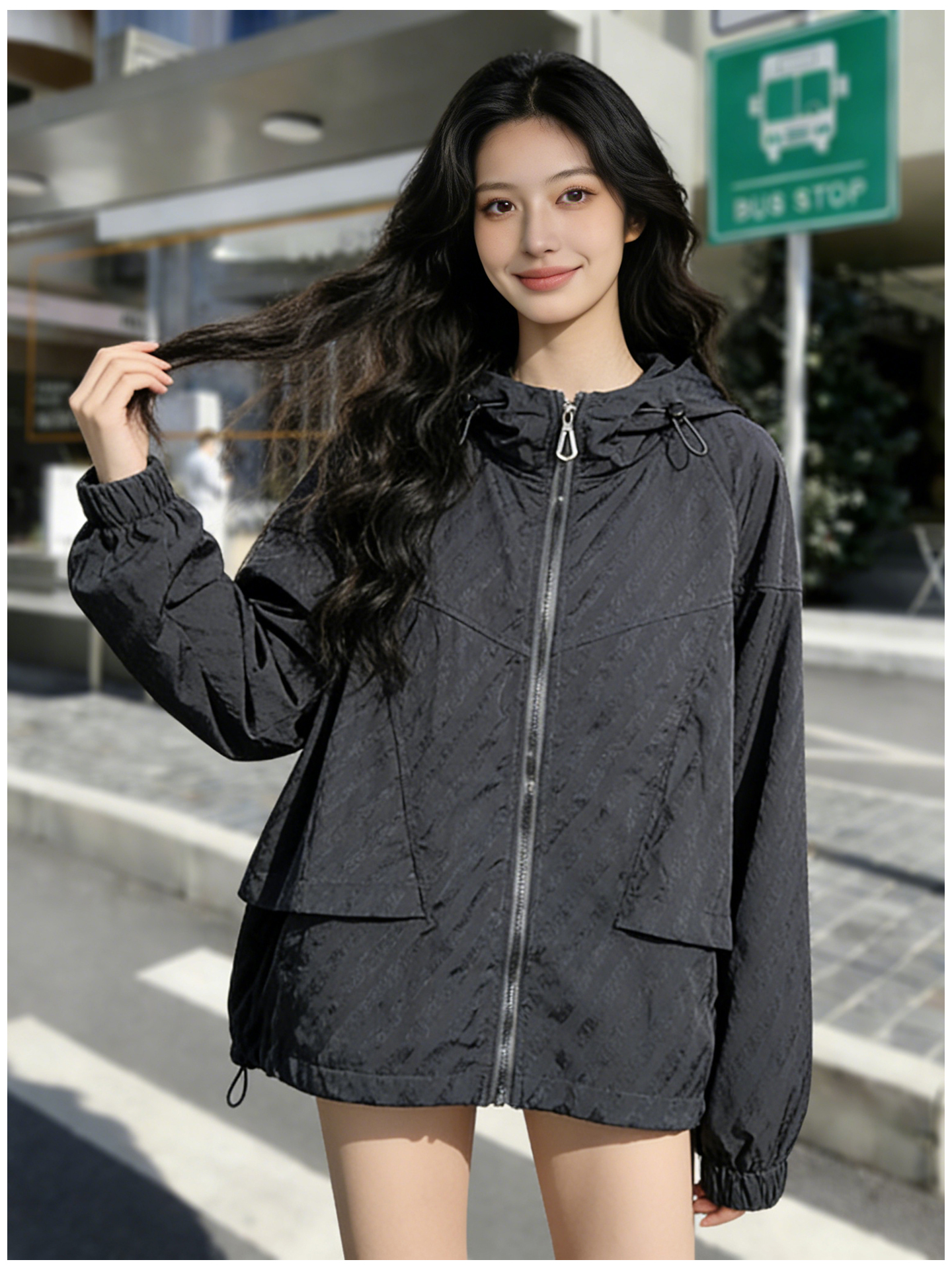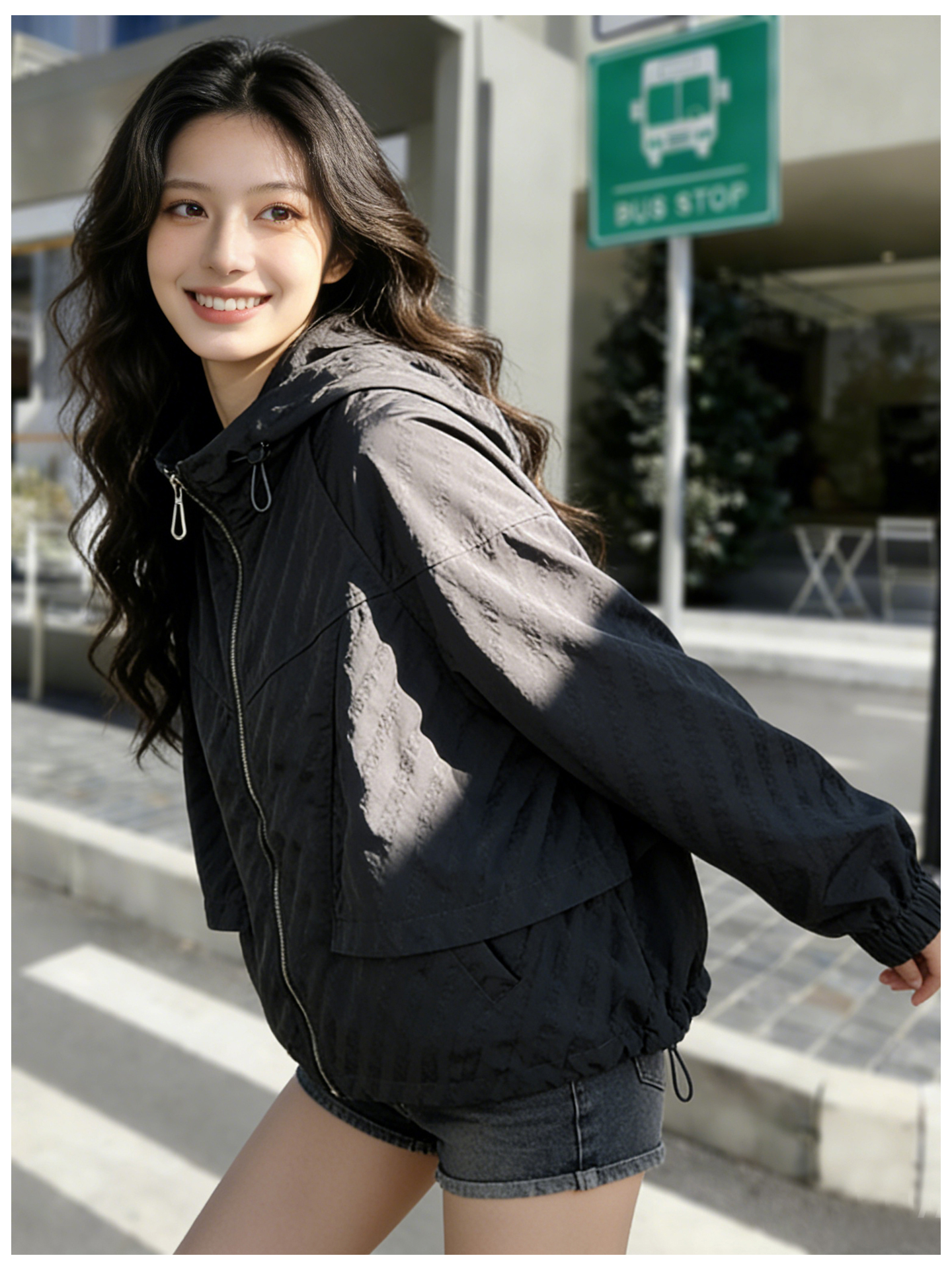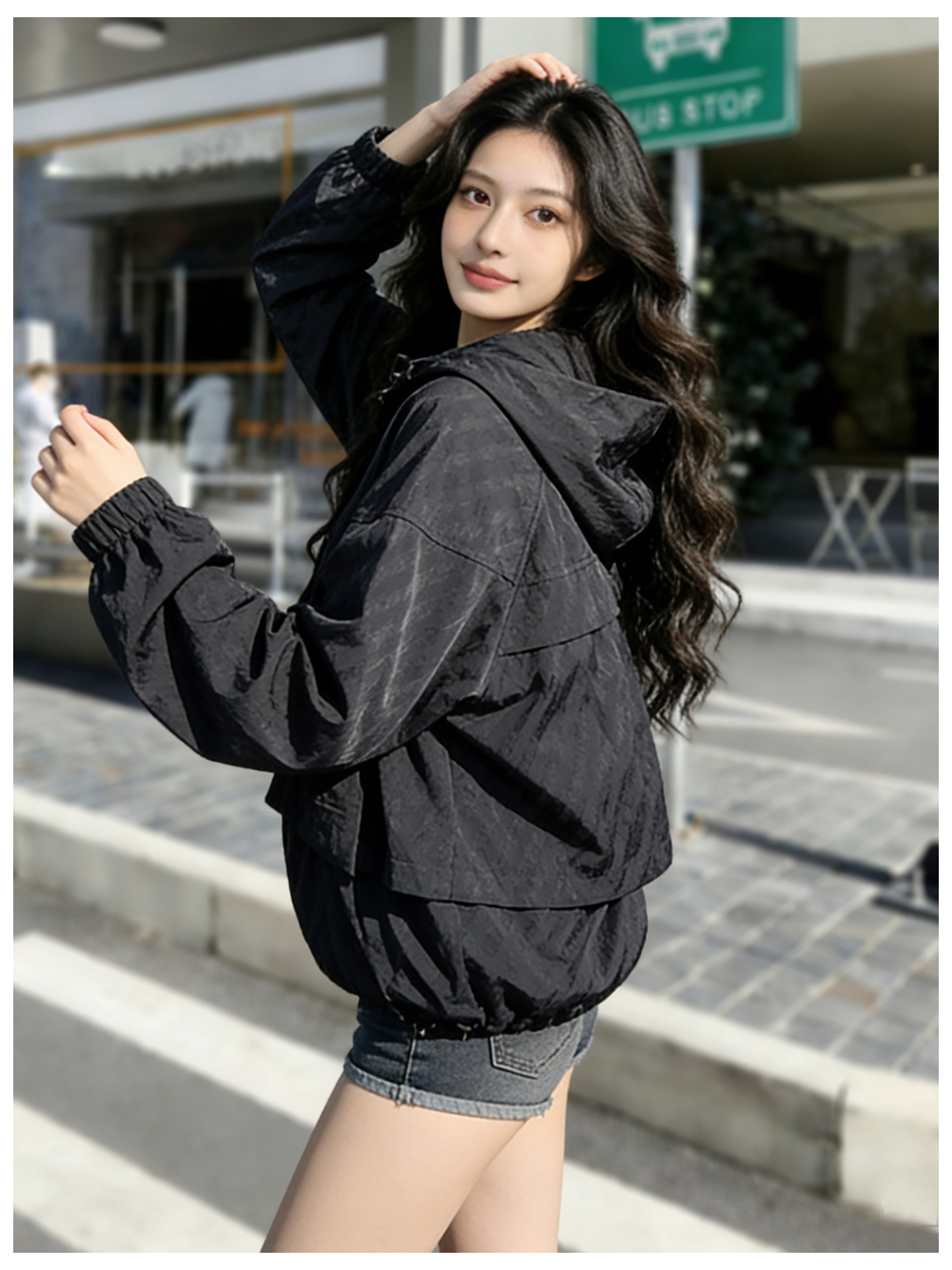 SG1207款2026春装新品短款女士宽松时尚短款设计感超好看提花连帽短外套