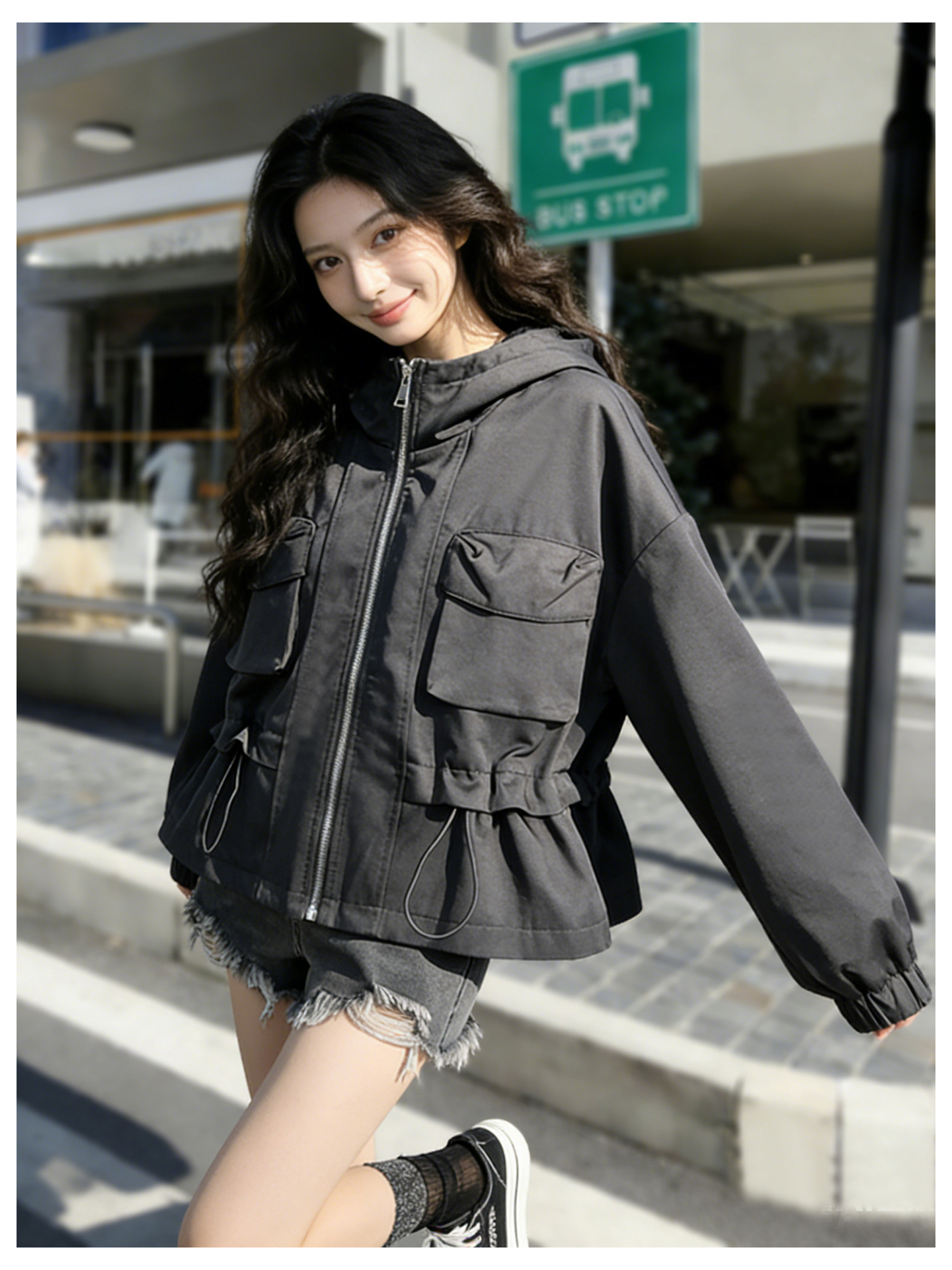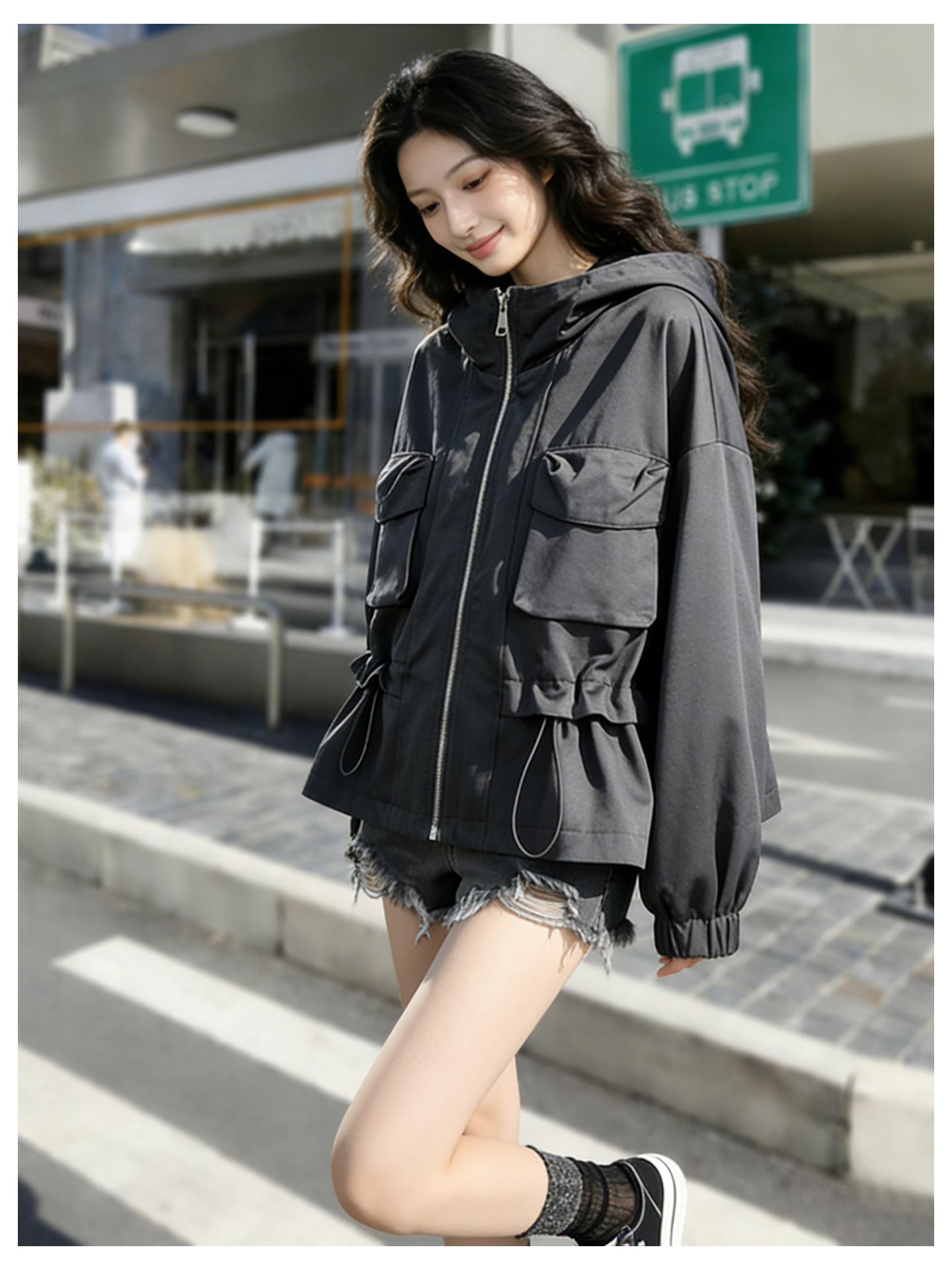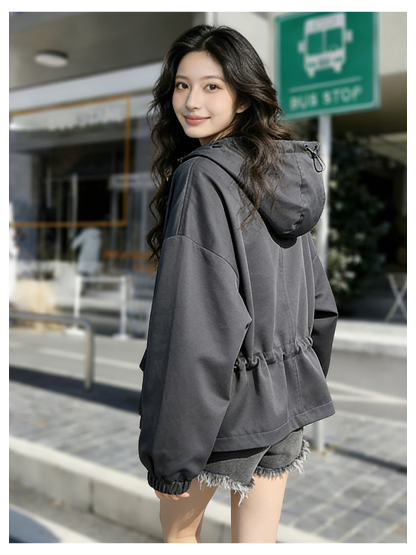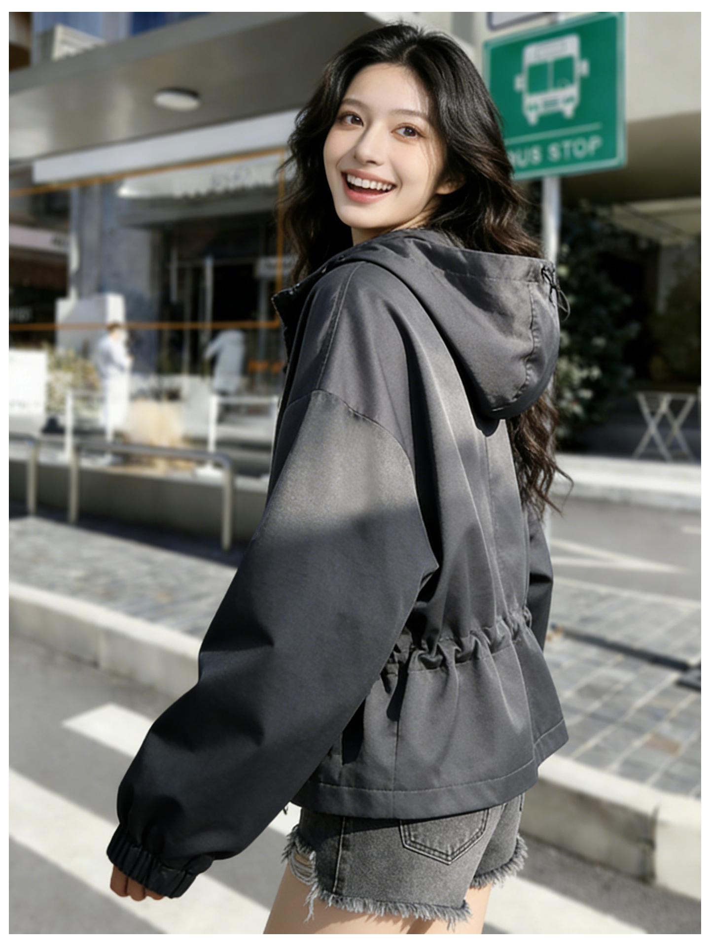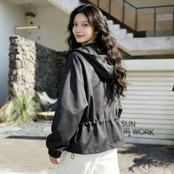 SG1209款2026春季新款女士短款收腰时尚显瘦连帽短外套