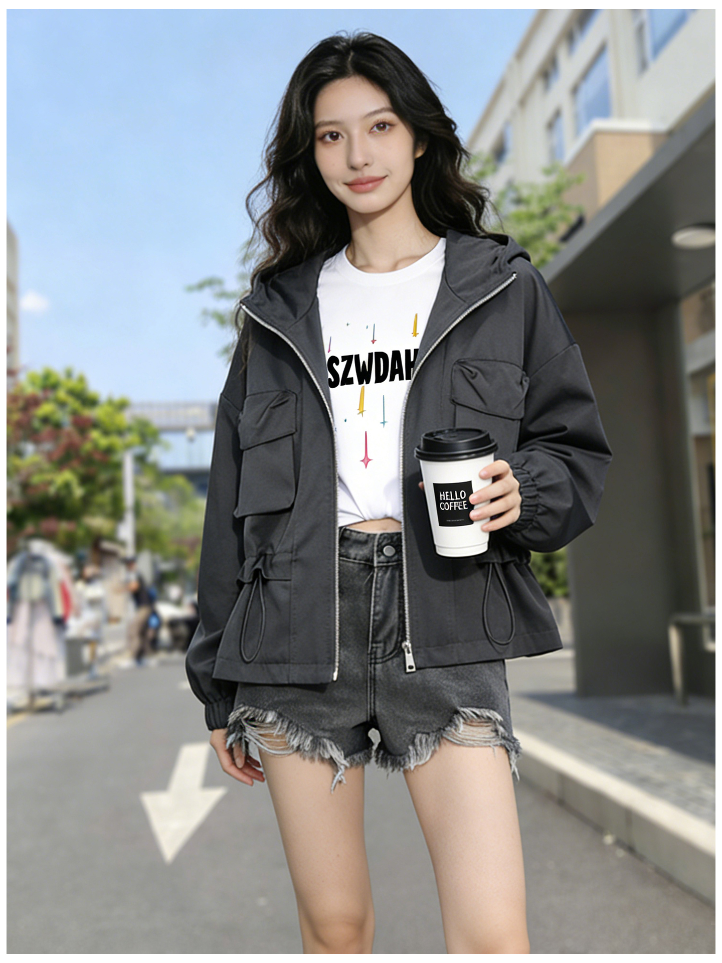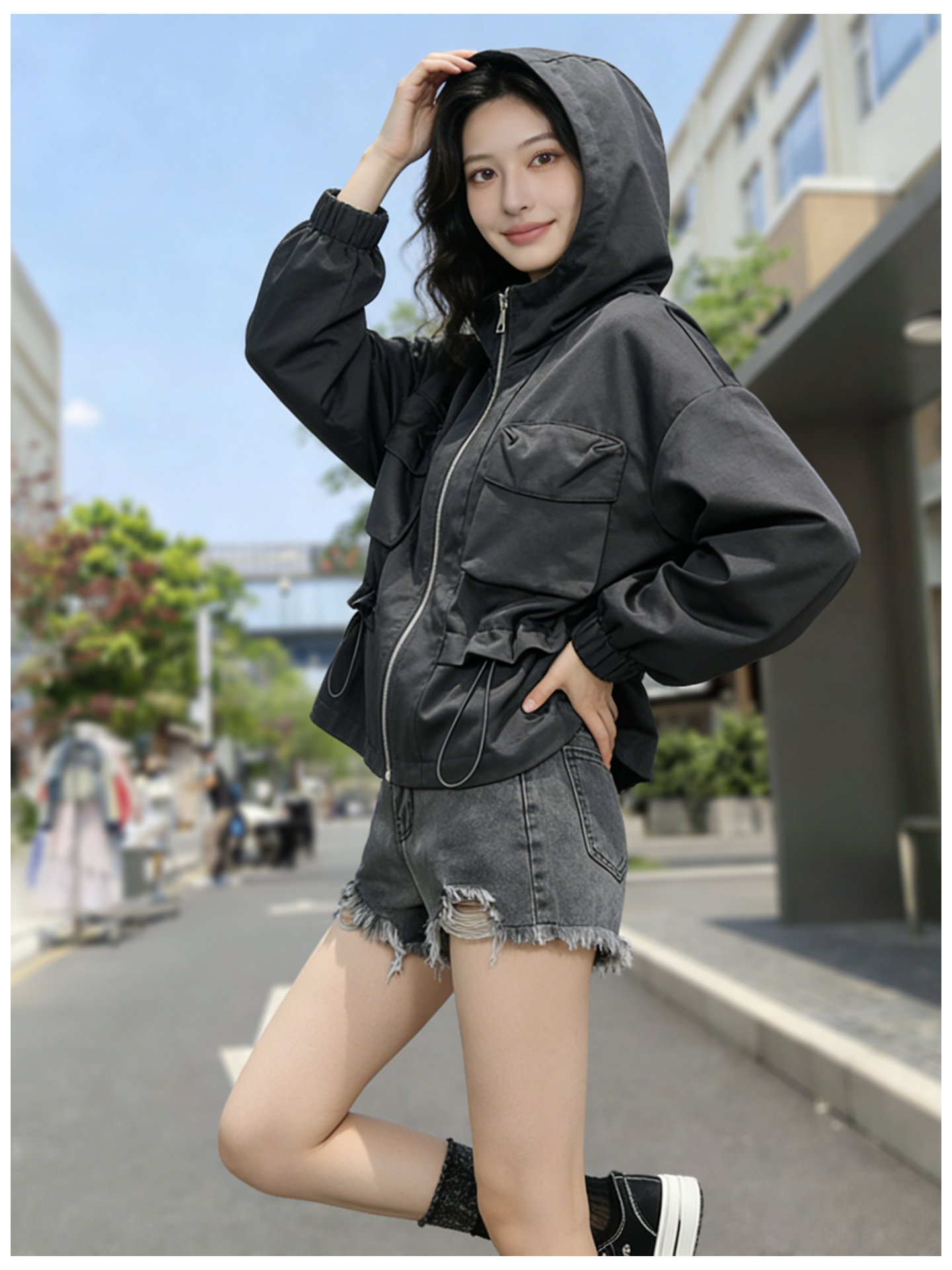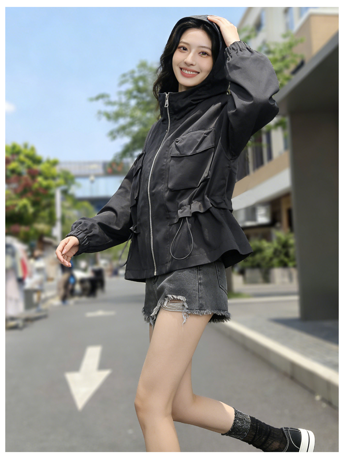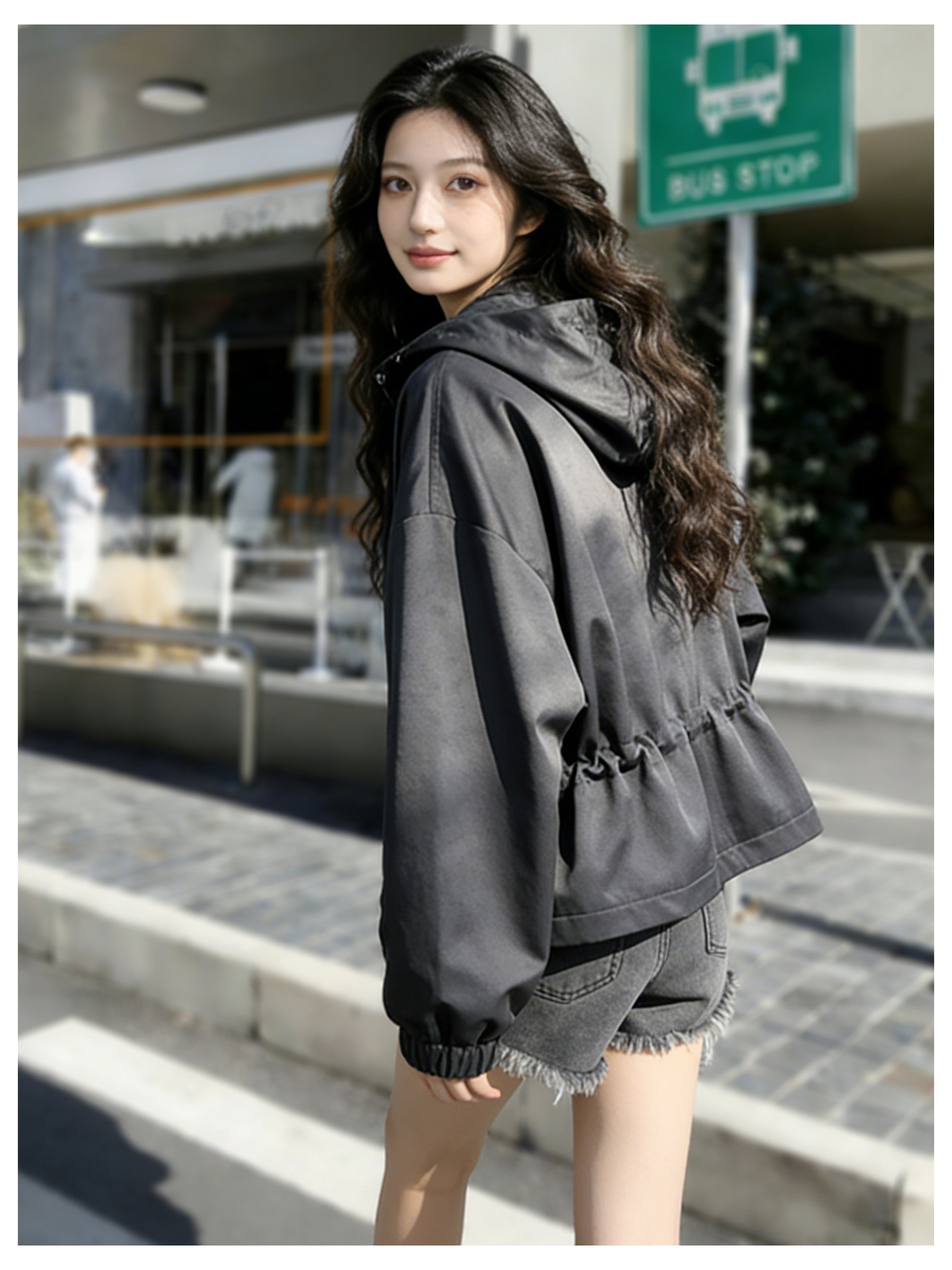 SG1209款2026春季新款女士短款收腰时尚显瘦连帽短外套