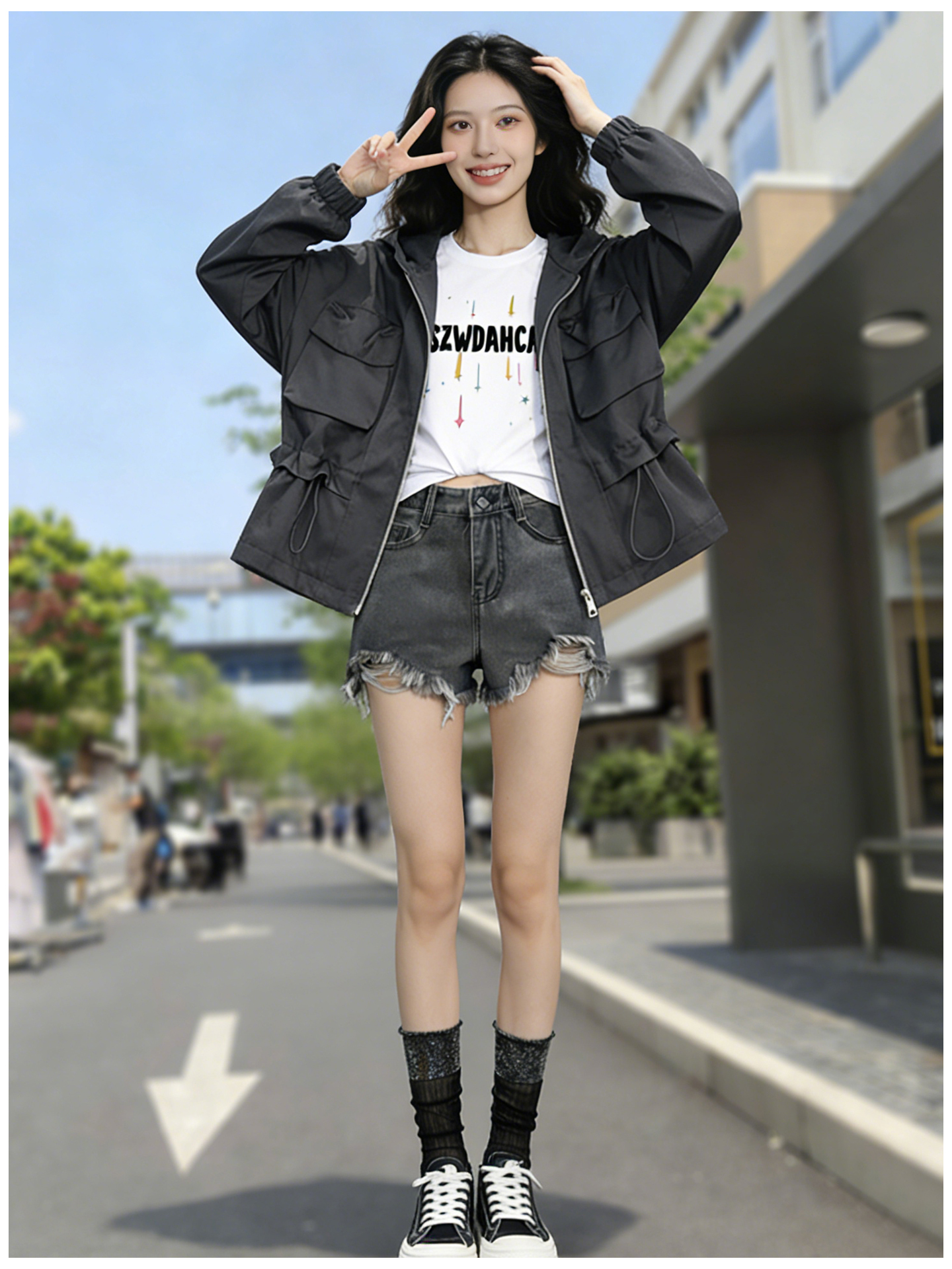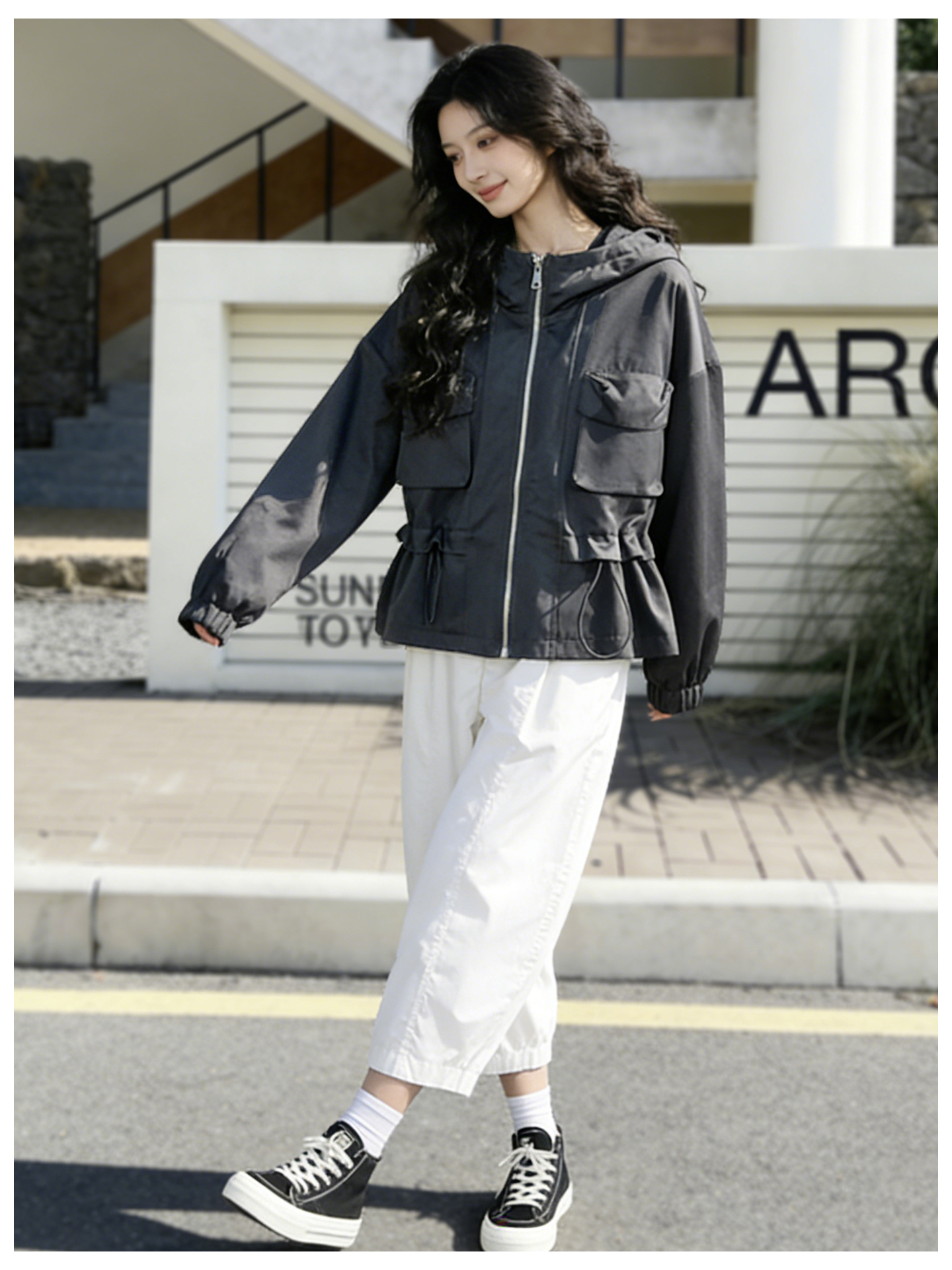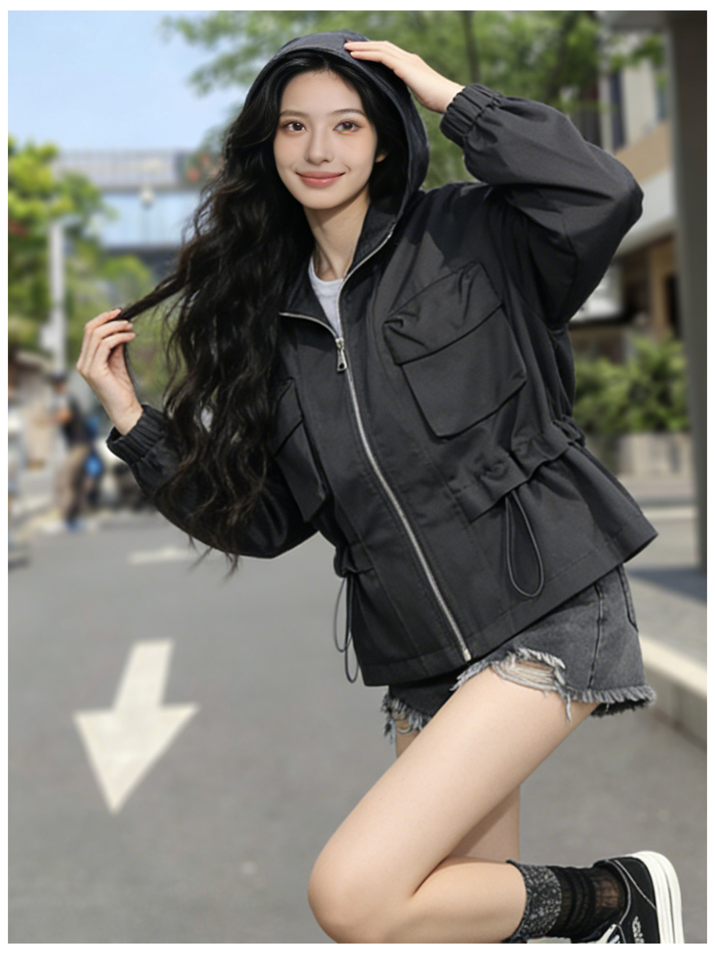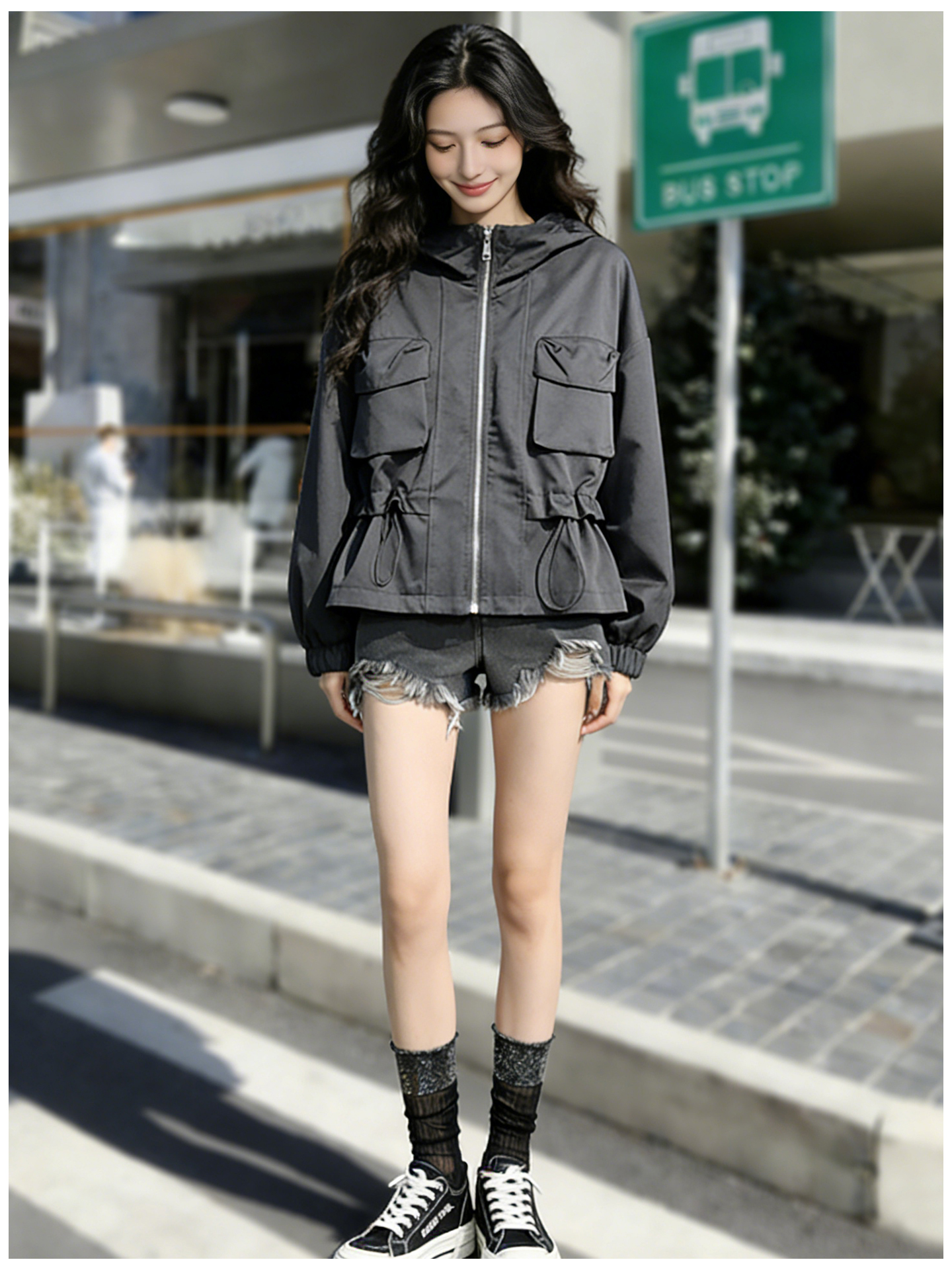 SG1209款2026春季新款女士短款收腰时尚显瘦连帽短外套