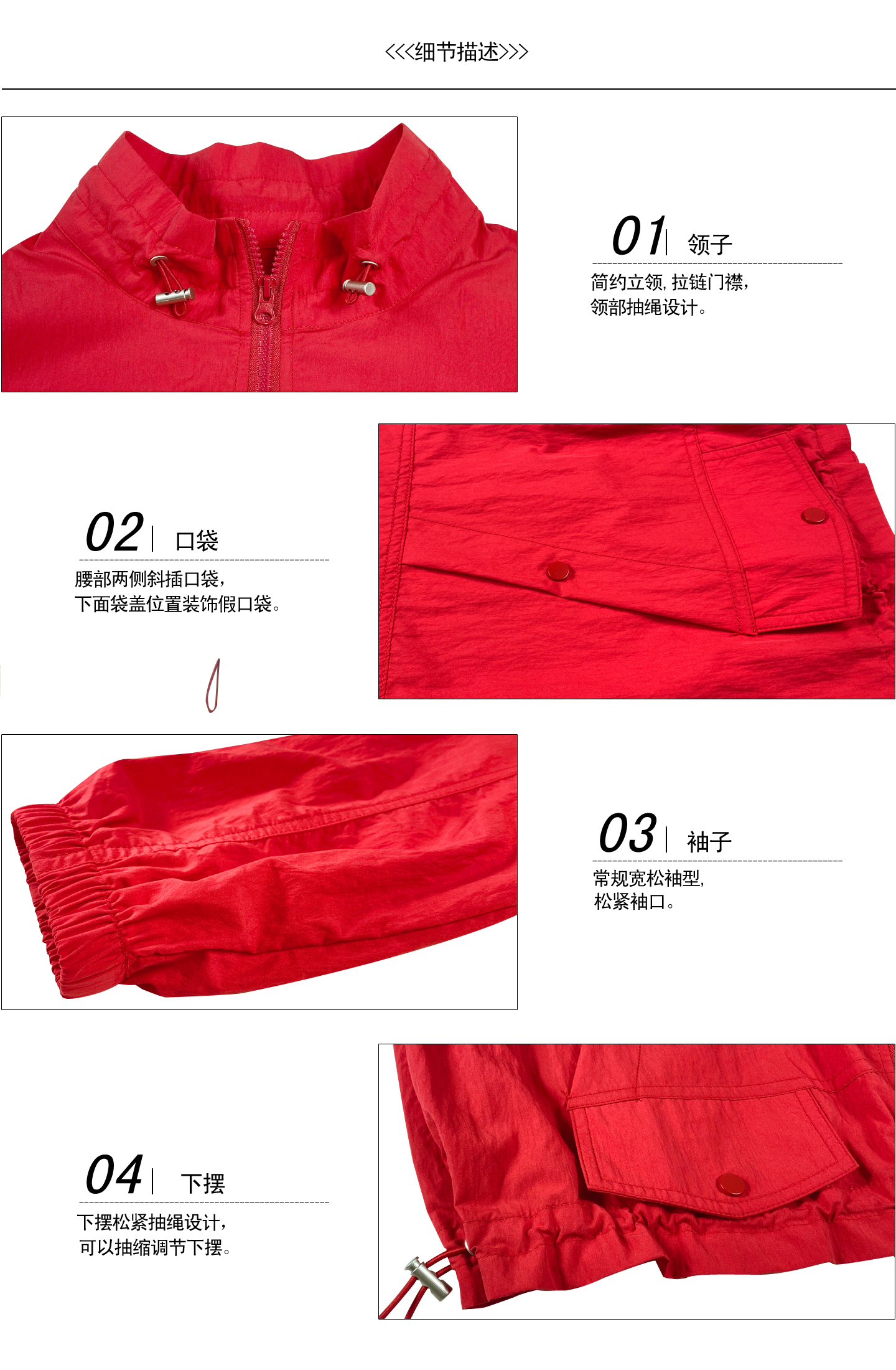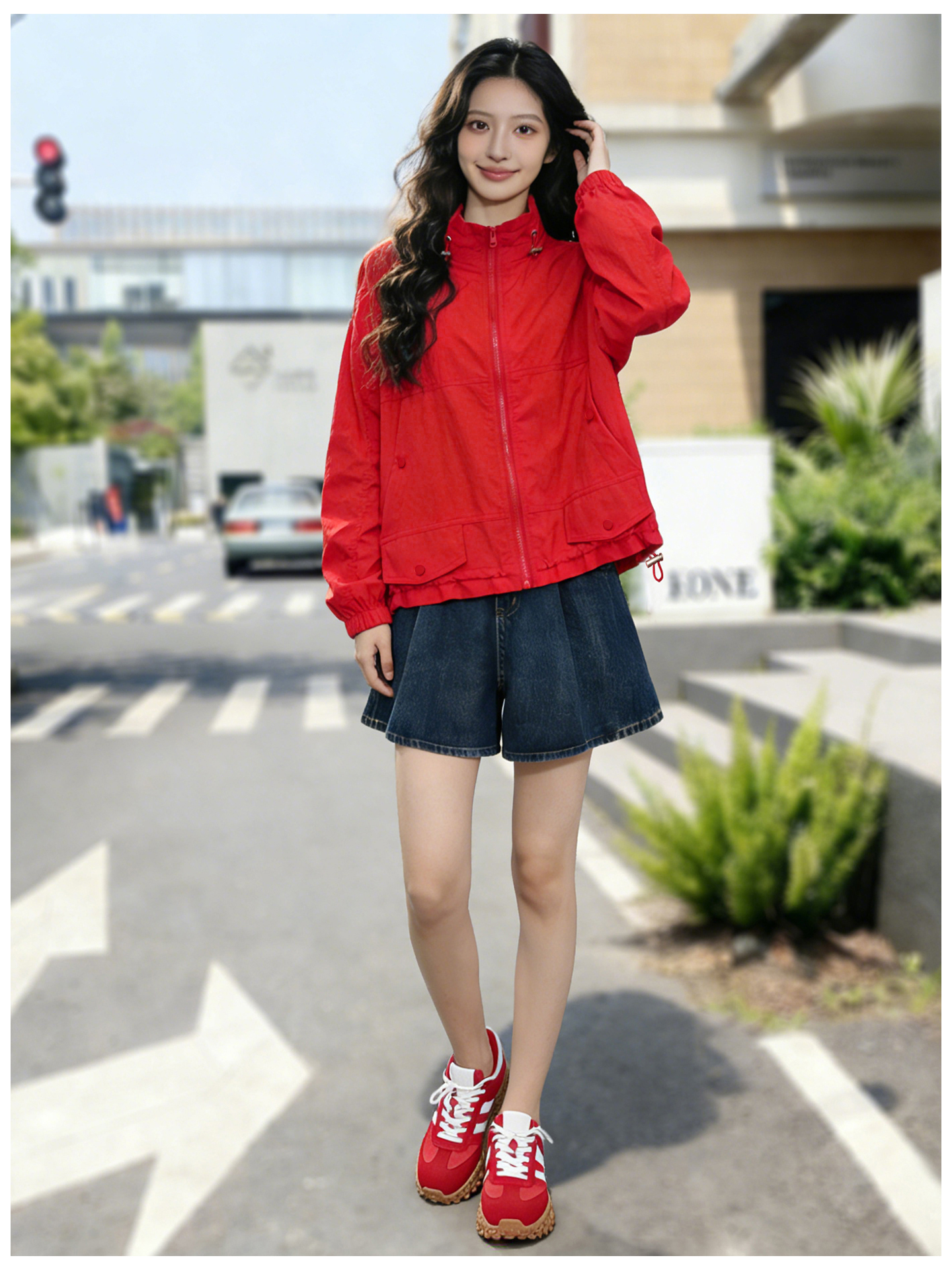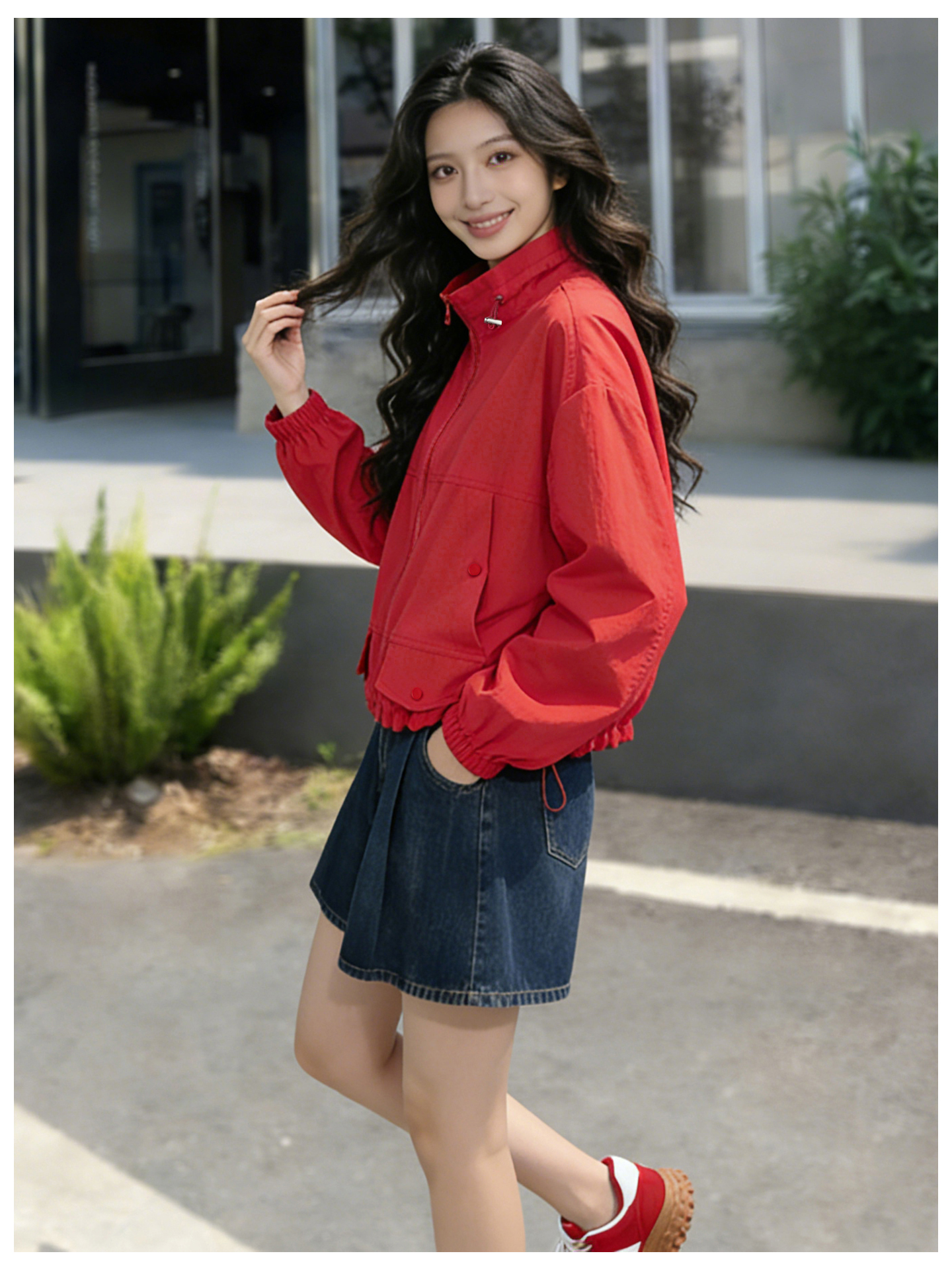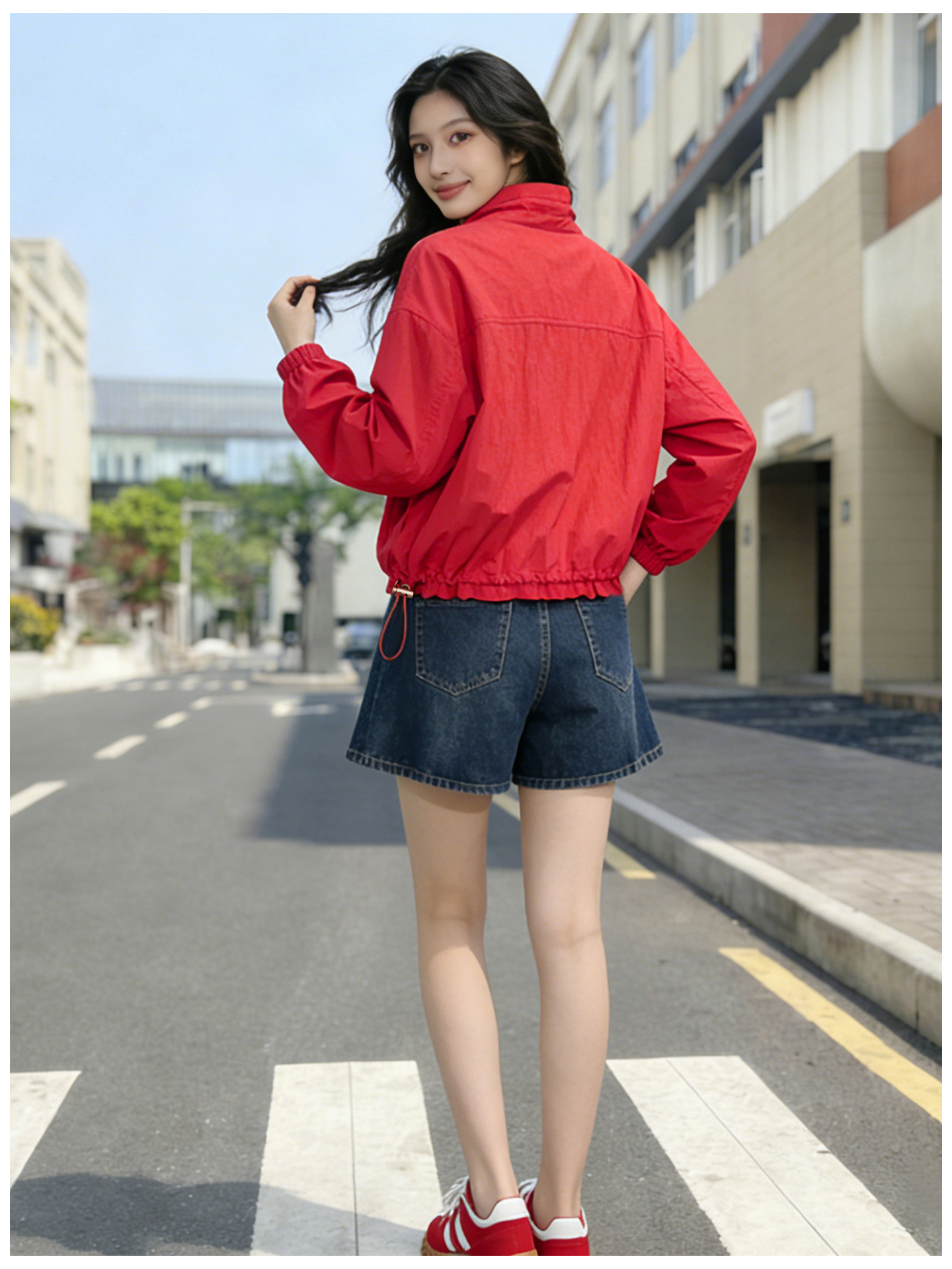 SG1213款2026初夏新款单层短款透气薄外套女小个子立领宽松时尚红色防晒衣(锦棉柔软薄面料)
