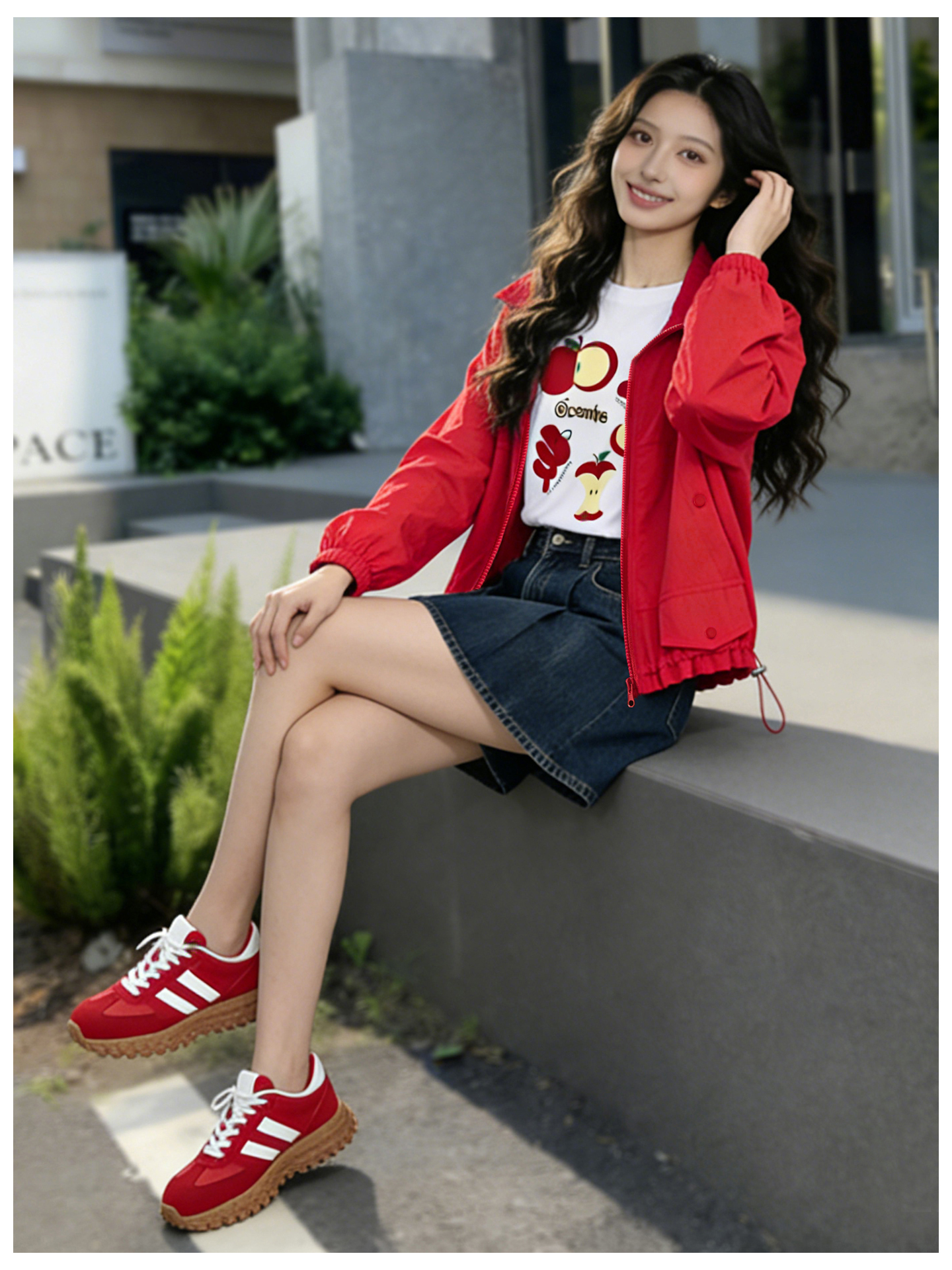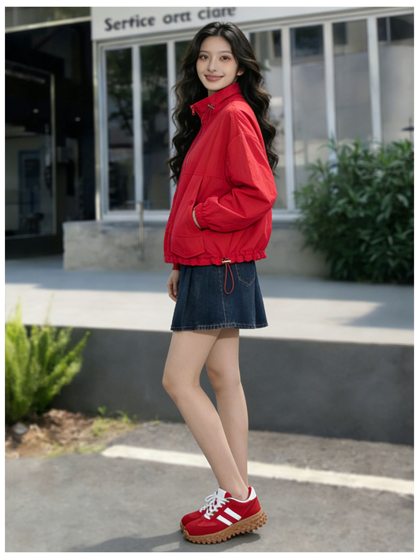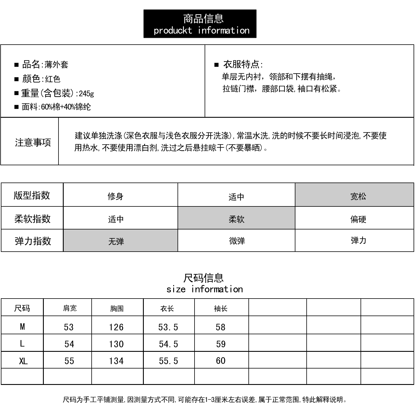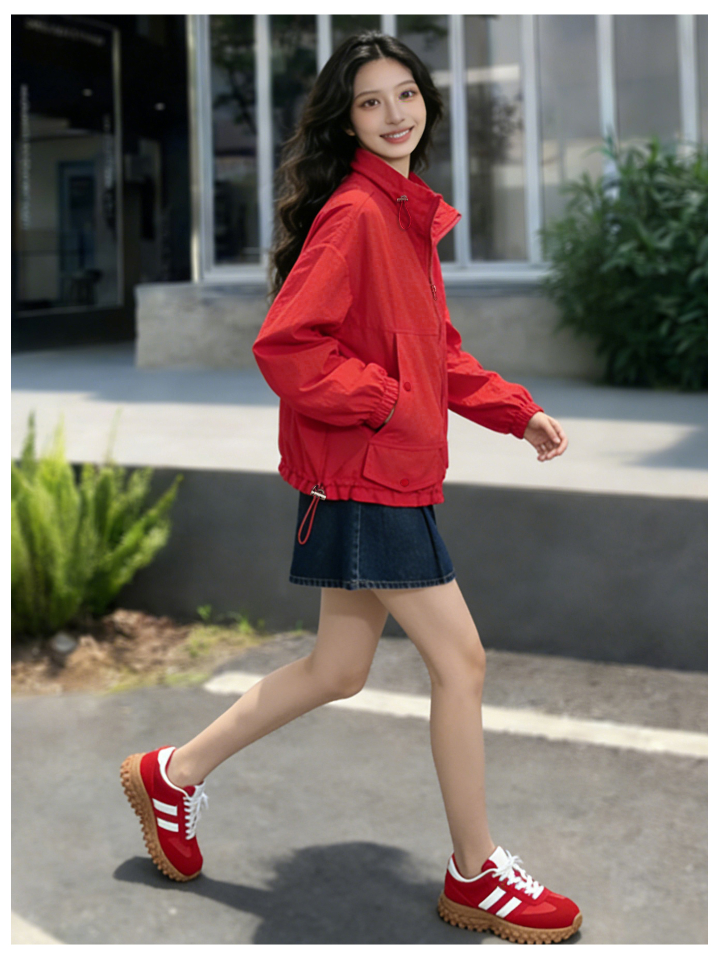 SG1213款2026初夏新款单层短款透气薄外套女小个子立领宽松时尚红色防晒衣(锦棉柔软薄面料)